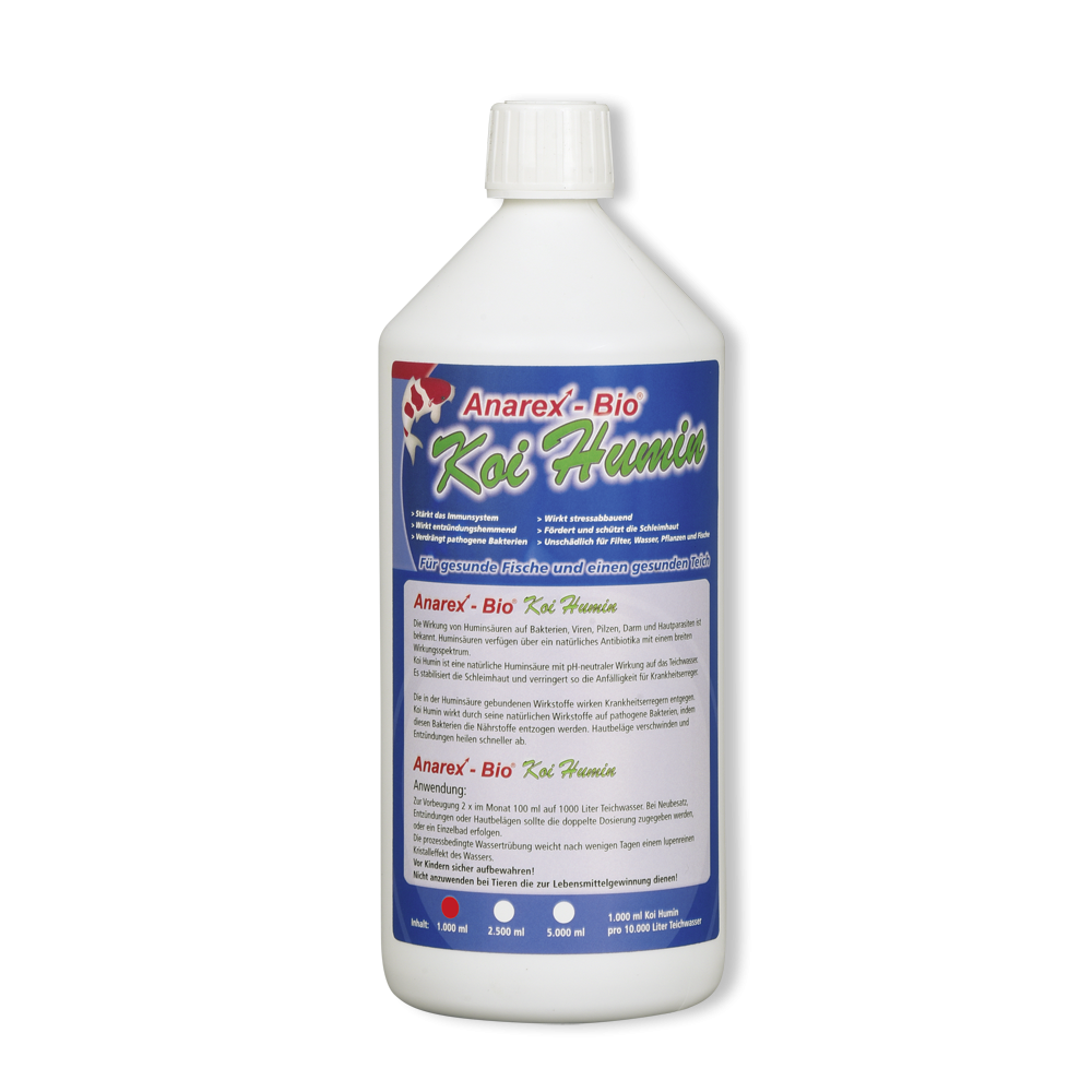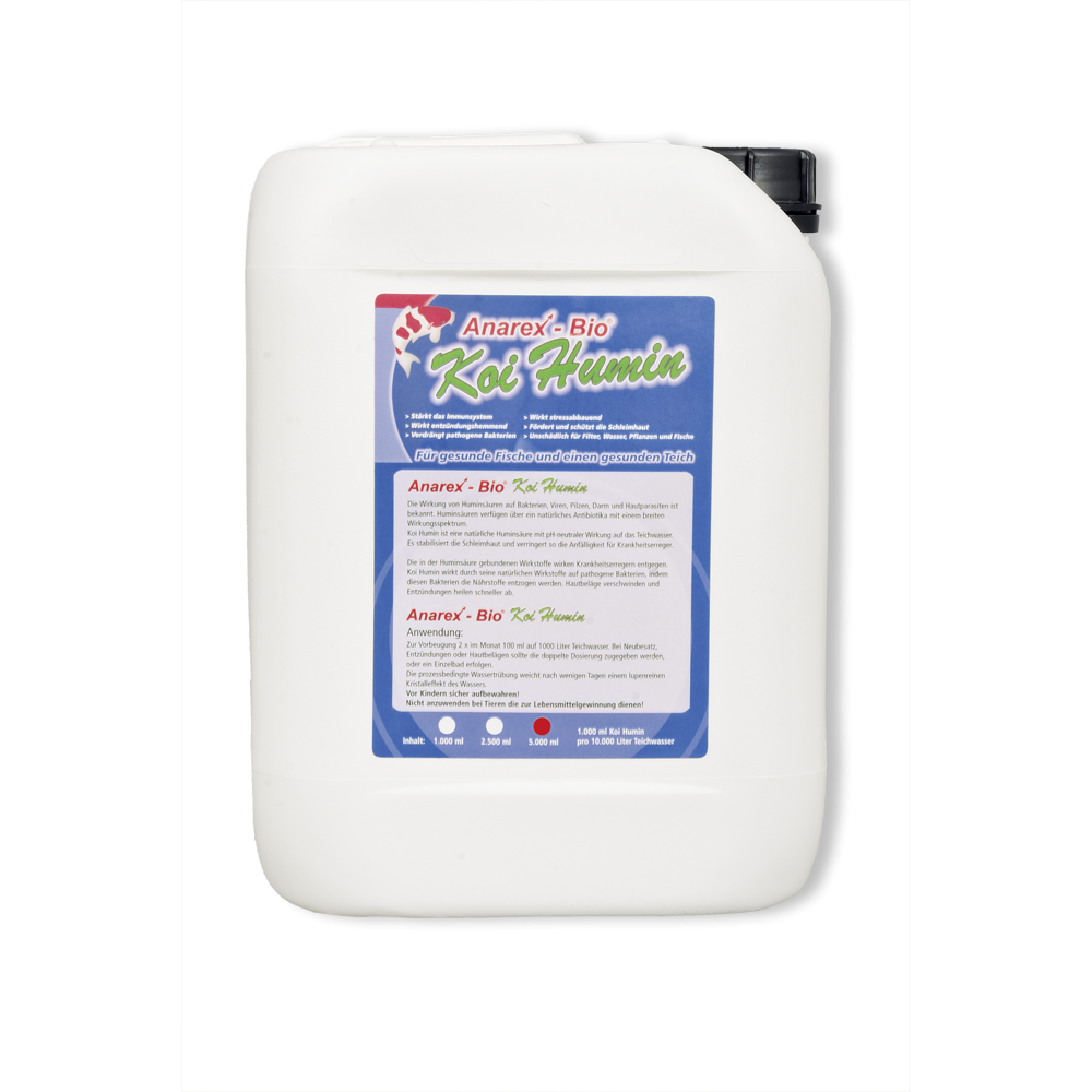 Koi-Humin ist eine natürliche Huminsäure mit pH-neutraler Wirkung auf das Teichwasser. Es stabilisiert die Schleimhaut und verringert so die Anfälligkeit für Krankheitserreger.