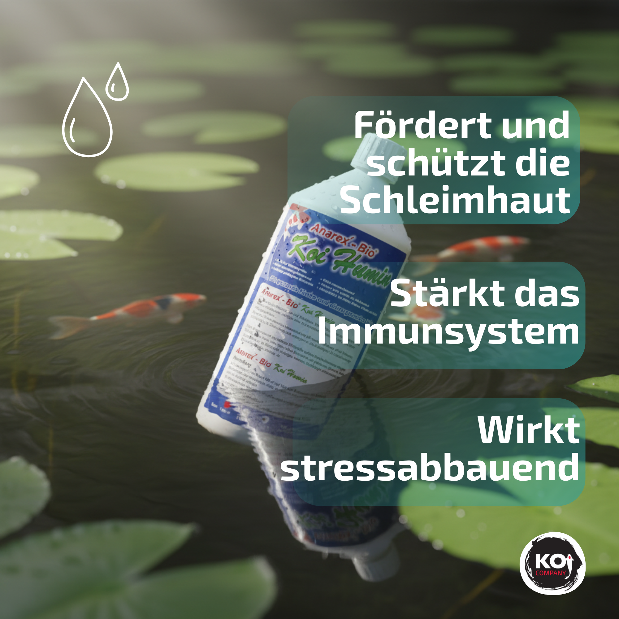Bitte beachten Sie: Anarex-Bio® Koi Humin ist temperaturunabhängig und kann das ganze Jahr eingesetzt werden.