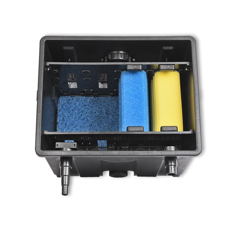 Der AquaForte MBF 350 Kammerfilter ist optimal für Innenhälterungen oder Teiche bis max. 6.000 Liter.