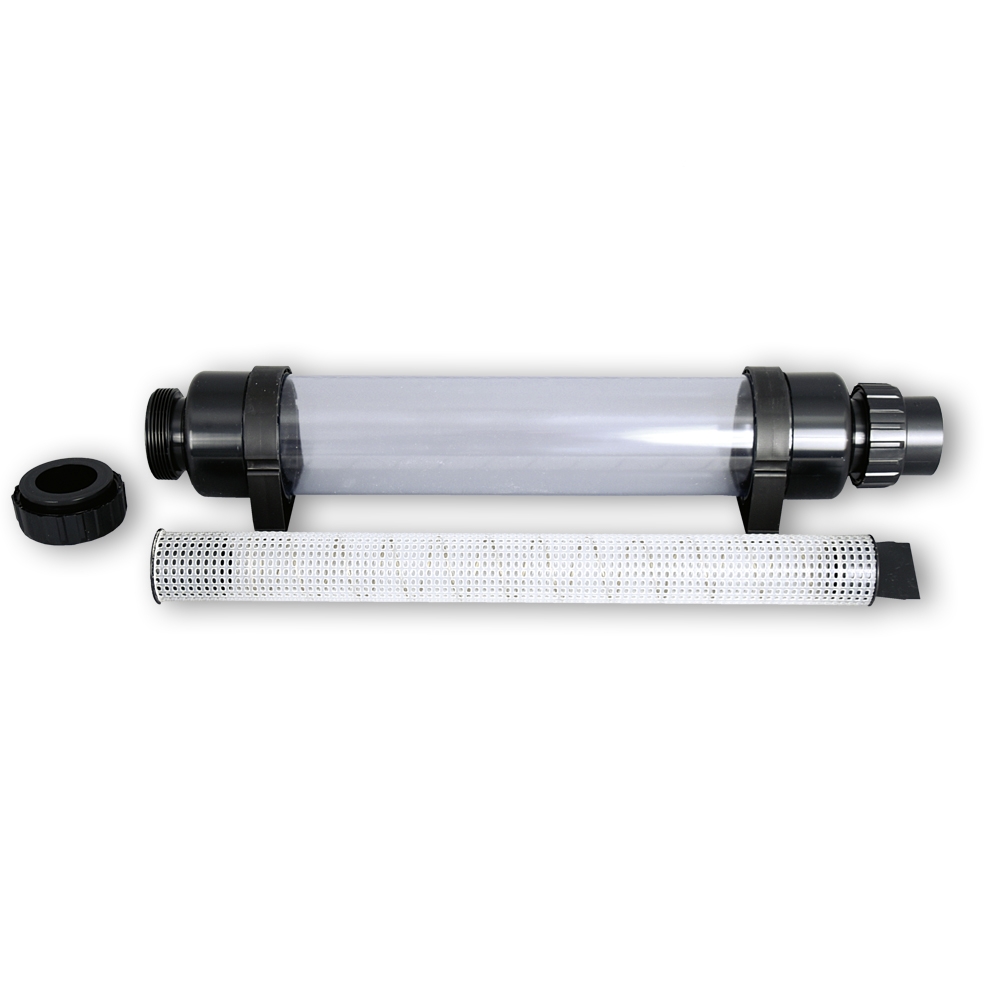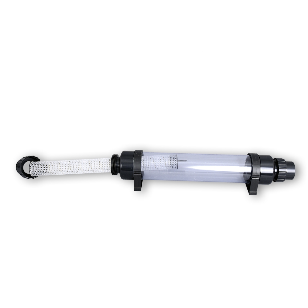 Der Rohr-Vorfilter fängt grobe Schmutzteile und Schmutzstoffe auf, so dass diese nicht in der Pumpe bzw. im Filter landen. Durch das praktische Sichtglas ist der Verschmutzungsgrad immer leicht einzusehen.