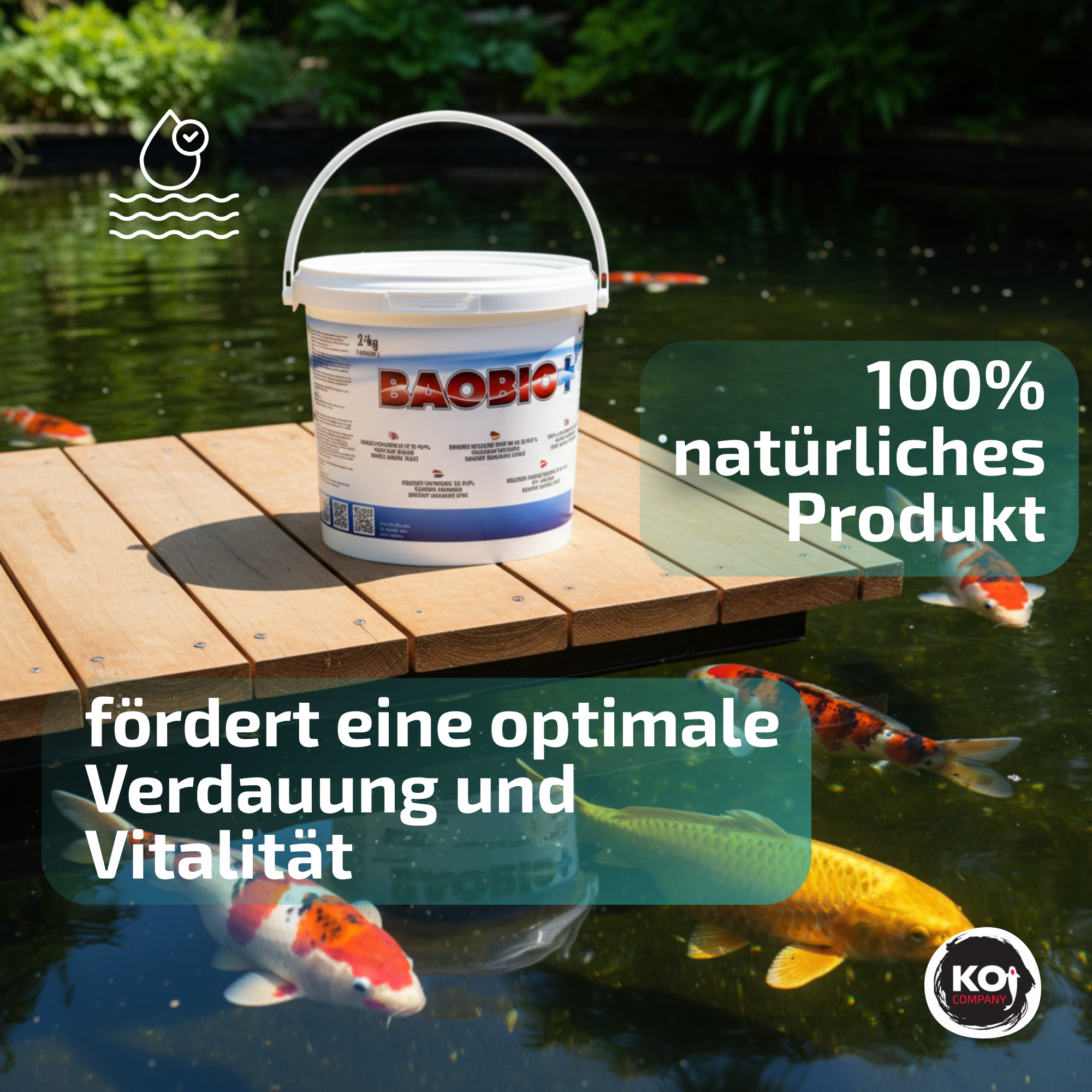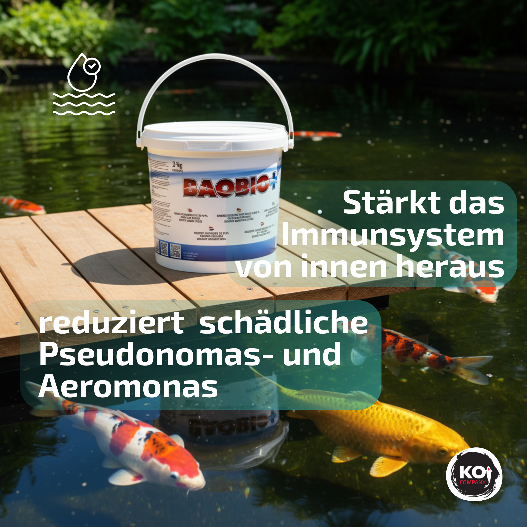 BaoBio+ ist ein weiter entwickeltes Bakterienpräparat mit einer Keimzahl von über 100 Millionen pro Gramm. Es wird in Pulverform hergestellt. BaoBio+ reduziert die schädlichen Pseudonomas- und Aeromonas-Stämme innerhalb von 4 Wochen sogar um bis zu 99,9%.