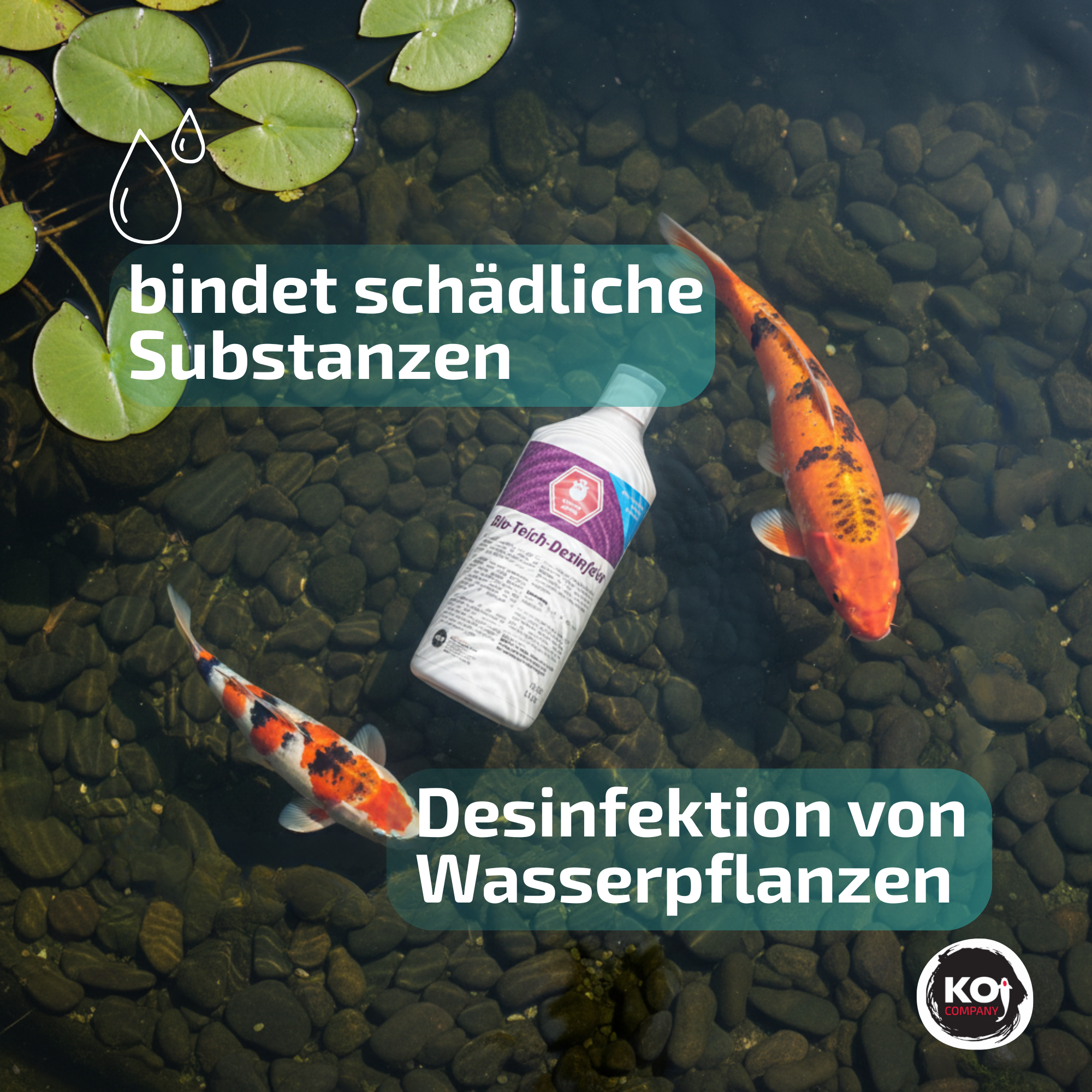 Teich-Desinfekt wurde entwickelt, um schädliche Umwelteinflüsse besonders im Frühjahr und vor der Winterruhe von Ihren Fischen fern zu halten. Für die Keimdrucksenkung und zur Desinfektion.