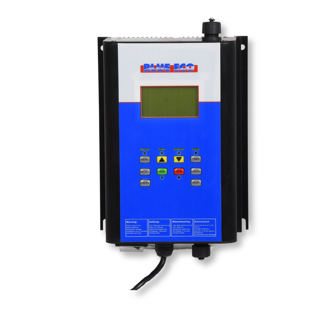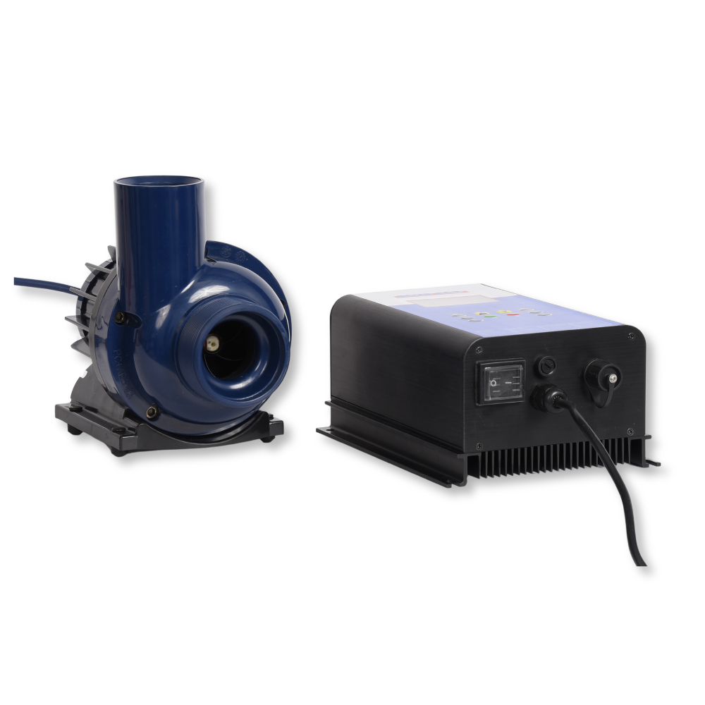 Das externe Steuergerät steuert die Pumpe. Dieses sorgt mit der True Sine Wave Technik für den allerhöchsten Grad an Effizienz und Zuverlässigkeit. Es zeigt die Leistung, Stromverbrauch, Drehzahl und Betriebsstunden sowie entstehende Störungen an.