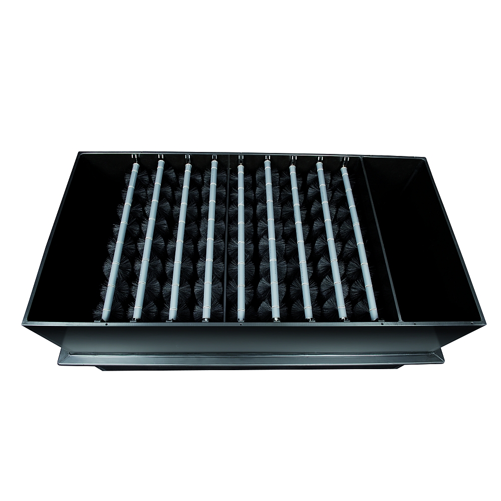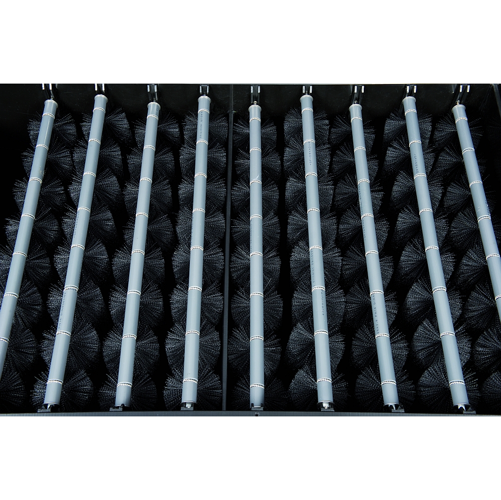 Der verlässliche „Lastesel“ unter den Filtersystemen. Und das ist als Kompliment gemeint! Schlichte Technik mit erstaunlicher Wirksamkeit. Eine dauerhafte, kostengünstige Lösung, denn der „genügsame Lastesel“ verursacht keine Folgekosten. Die Bürstentechnik ist schlicht unverwüstlich. Neu und ergonomisch: Für die komfortable Entnahme und einfache Reinigung sind die Bürsten in Module gruppiert. Durch die Wellenform der Bürstenhaare ergibt sich eine deutliche Vergrößerung der Oberfläche. Dies bewirkt eine noch feinere Filtration, erhöht die Schmutzaufnahme und steigert die ohnehin schon beträchtliche Lebensdauer.