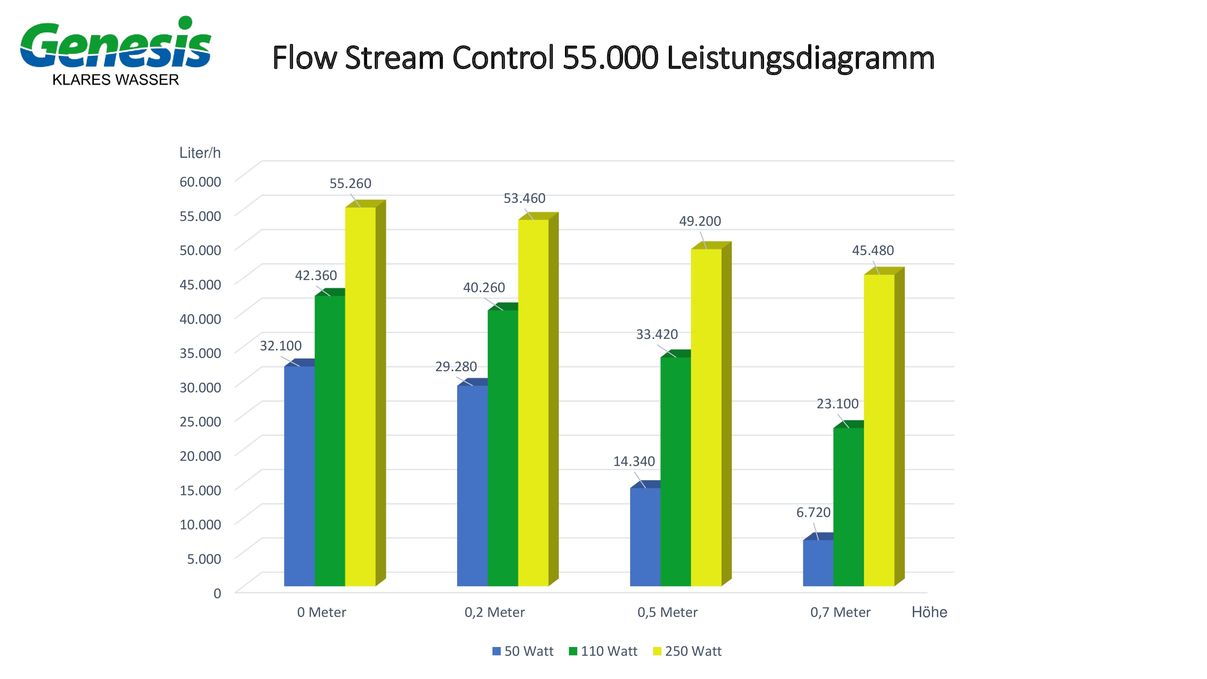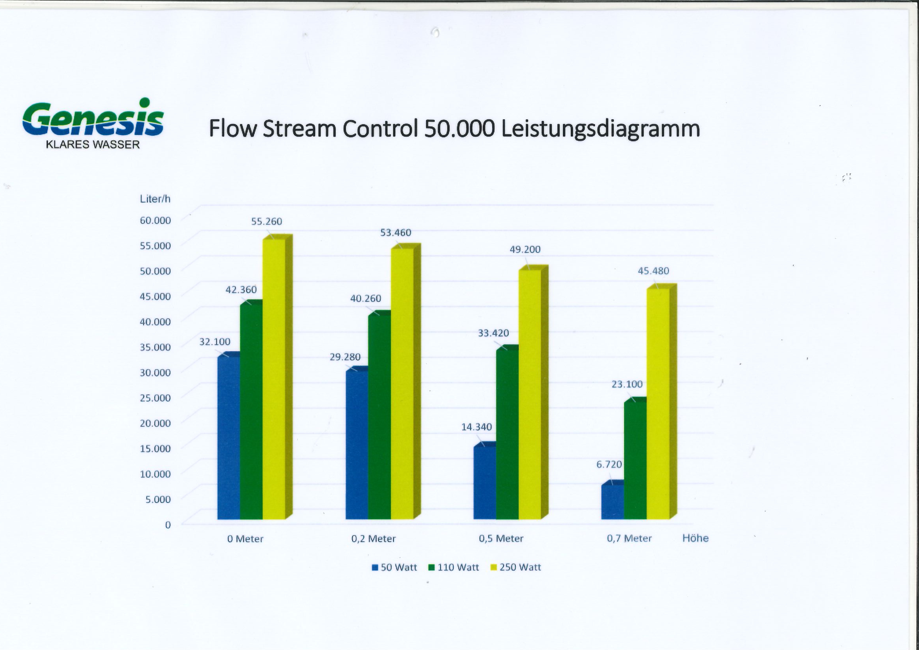 Bei einer Förderhöhe von 0,5m verbraucht Sie bei 33.420 Liter Fördermenge nur 110 Watt.