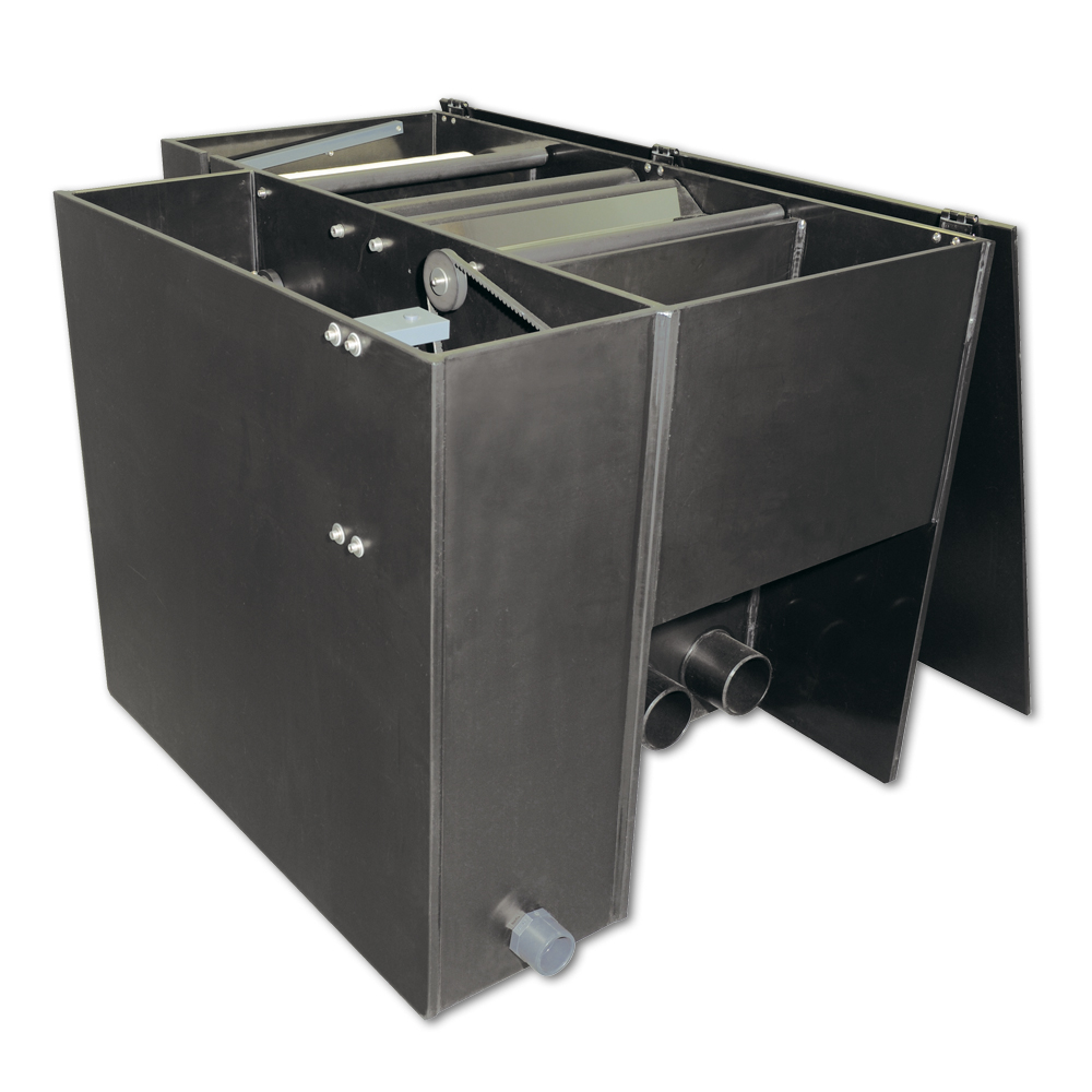 Die Funktionsweise des Filters ist so einfach, das es schon fast unglaublich klingt. Eine Pumpe fördert das Wasser in den Filter. Das Wasser muss durch Papiervlies, das sofort alle Schwebepartikel zurückhält. Das saubere Wasser gelangt in die Biostufe, in der nun gelöste Stoffe wie Ammonium und Nitrit abgebaut werden und von dort gelangt das Wasser wieder zurück in den Teich. Mit der Zeit verstopft das Filtervlies immer mehr und der Wasserstand im Filter steigt an. Über einen Überlauf wird eine Mechanik in Bewegung gesetzt, die das Filtervlies automatisch und ohne Strom weiterbefördert, bis wieder genügend Wasserfluss erreicht wird. Somit wird ein Überlaufen oder eine Filterunterfunktion verhindert.