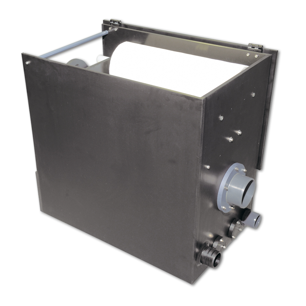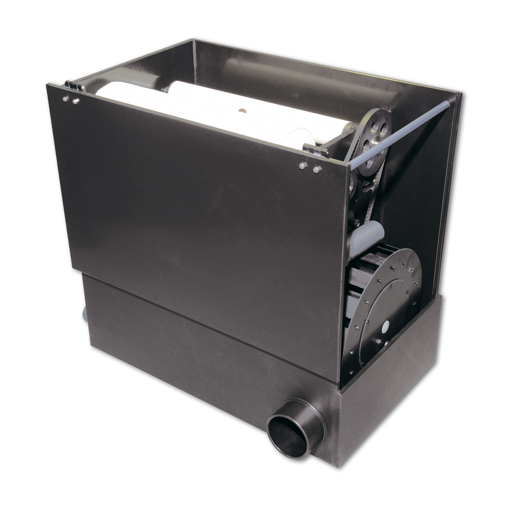 Die Funktionsweise des Filters ist so einfach, das es schon fast unglaublich klingt. Eine Pumpe fördert das Wasser in den Filter. Das Wasser muss durch Papiervlies, das sofort alle Schwebepartikel zurückhält. Das saubere Wasser gelangt in die Biostufe, in der nun gelöste Stoffe wie Ammonium und Nitrit abgebaut werden und von dort gelangt das Wasser wieder zurück in den Teich. Mit der Zeit verstopft das Filtervlies immer mehr und der Wasserstand im Filter steigt an. Über einen Überlauf wird eine Mechanik in Bewegung gesetzt, die das Filtervlies automatisch und ohne Strom weiterbefördert, bis wieder genügend Wasserfluss erreicht wird. Somit wird ein Überlaufen oder eine Filterunterfunktion verhindert.