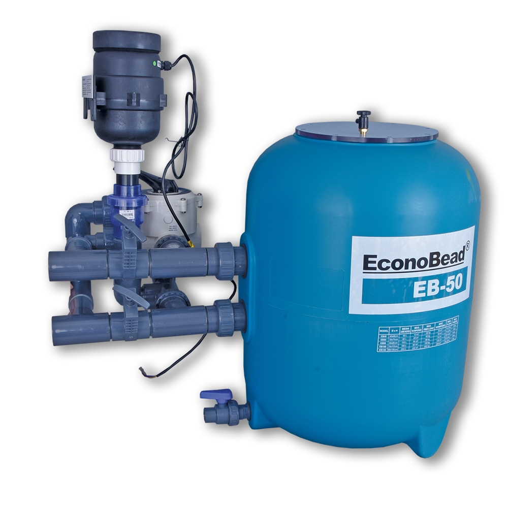 Der Hersteller bietet für alle EconoBead Filter einen Bypass an. Dieser ist ab Modell 60 inklusive. Hiermit wird der Einsatz von energiesparenden Pumpen möglich. Das 6-Wege-Ventil wird während der Filterung umgangen, so dass das Wasser auf geradem Weg direkt in und aus dem Filter läuft. Während der Spülung werden die Zugschieber geschlossen, dann fließt das Wasser über das 6-Wege-Ventil. Das Bypass-System ist dank seiner Gewindekupplungen sehr einfach an alle Bead Filter zu montieren.