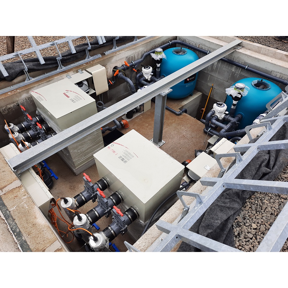 Wir haben uns aus V2A Edelstahl ein UVC Gehäuse herstellen lassen, damit Sie unabhängig von der vorhanden Filteranlage eine Industrie UVC sowohl in Schwerkraft, als auch als Pumpenvariante einbauen können.