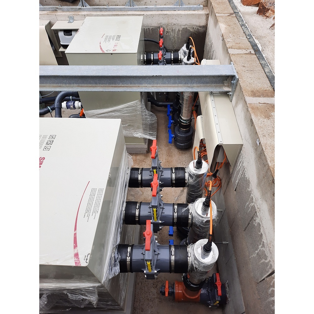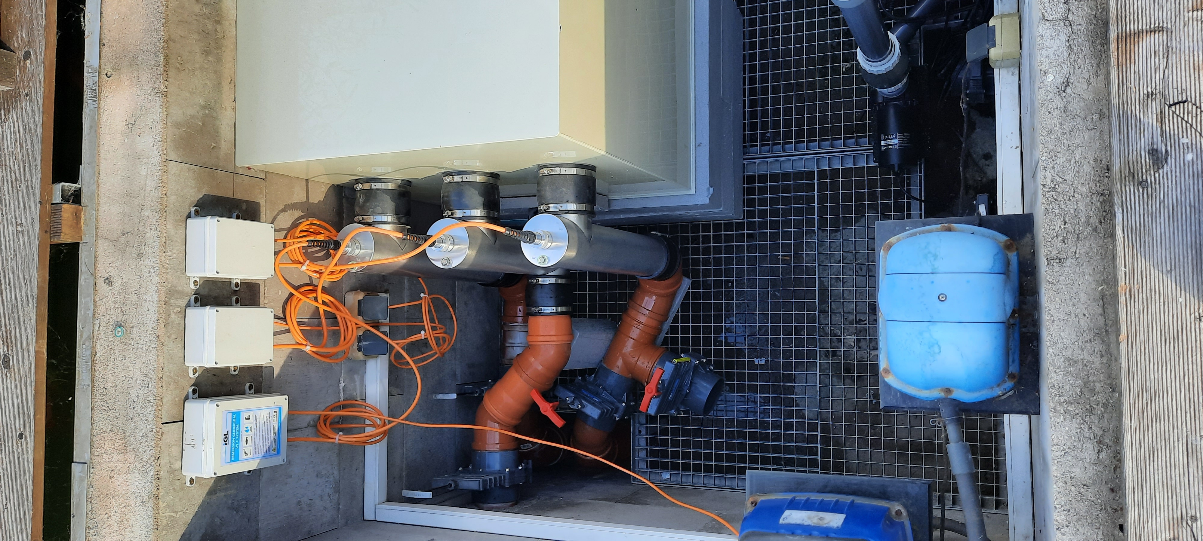 Das UVC Gehäuse hat 2 x 110 mm Ein- bzw. Abläufe, die Sie individuell anschließen können.