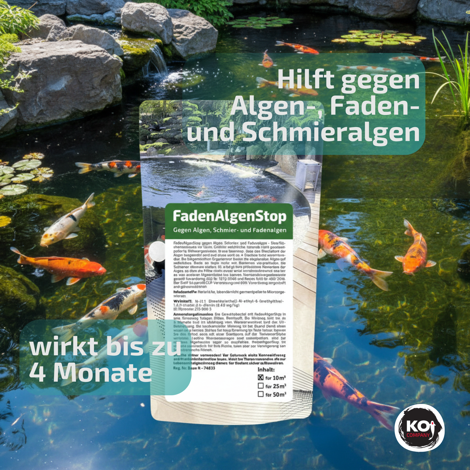 Es wirkt jedes Jahr, ich habe kaum Algen im Teich, aber total ohne Algen würde dann auch keine kois drin schwimmen können , das Mittel hält die Algen im Schacht, super Produkt!