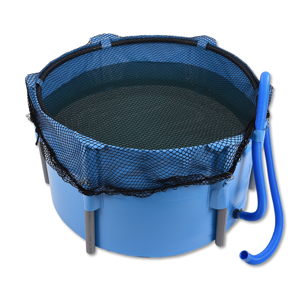An der Außenseite des Faltbeckens befinden sich Haken zum einfachen befestigen des im Lieferumfang enthaltenen Abdecknetzes.