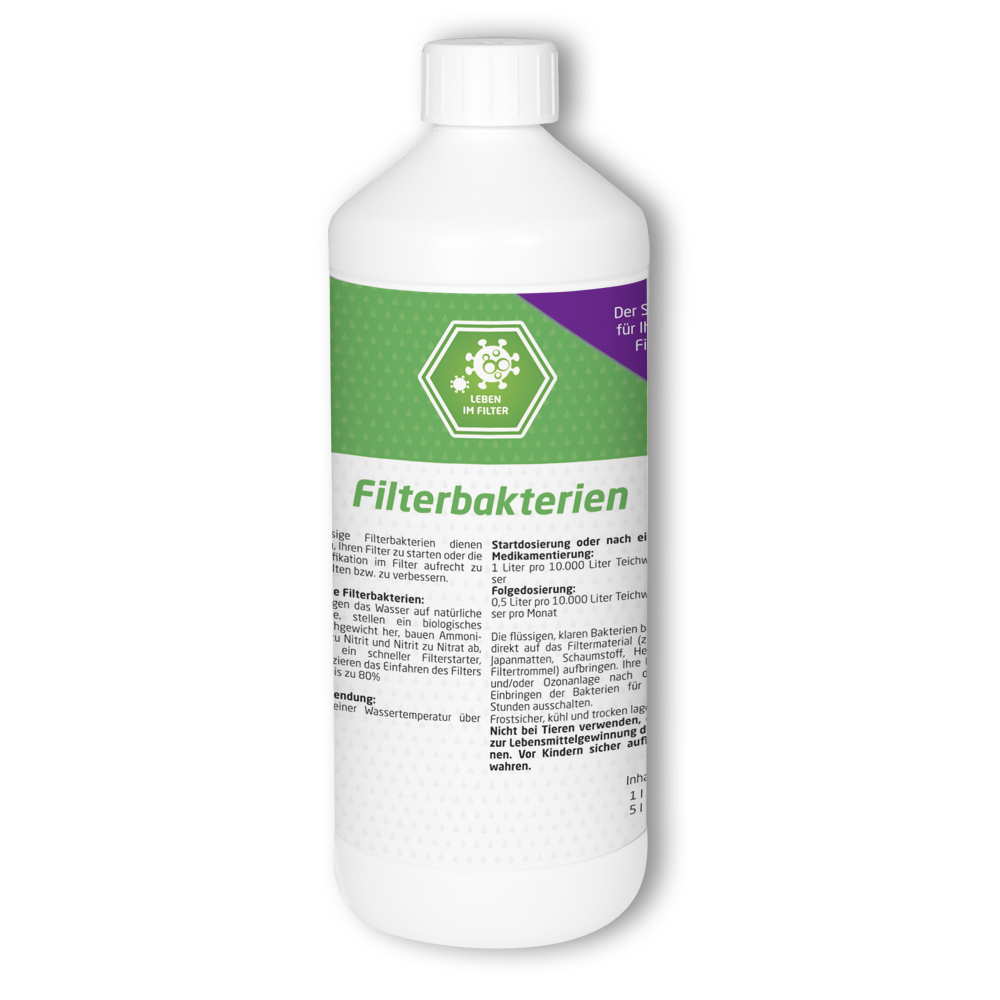 Filterbakterien für Ihren Teich in flüssiger Form, um Ihren Filter zu starten oder die Nitrifikation im Filter aufrecht zu erhalten oder zu verbessern.