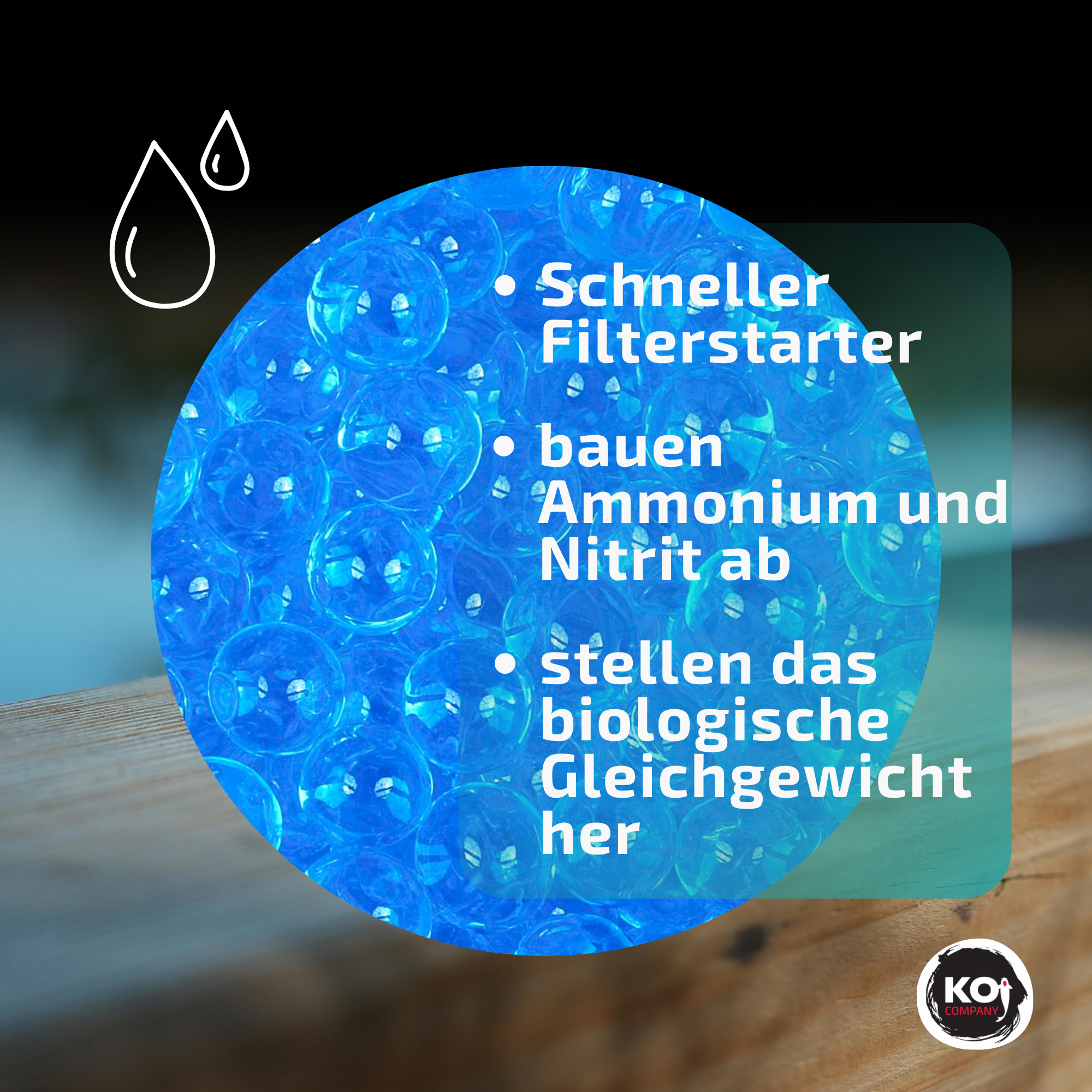 Die Filterkugeln enthalten Nitrifikationsbakterien in einer Konzentration von 5 x 10⁷ (Kolonie bildende Einheiten) und sind ungiftig für Mensch und Tier. Nach dem Eingeben beginnen sie sofort mit der Arbeit und sorgen für ein optimales biologisches Gleichgewicht.