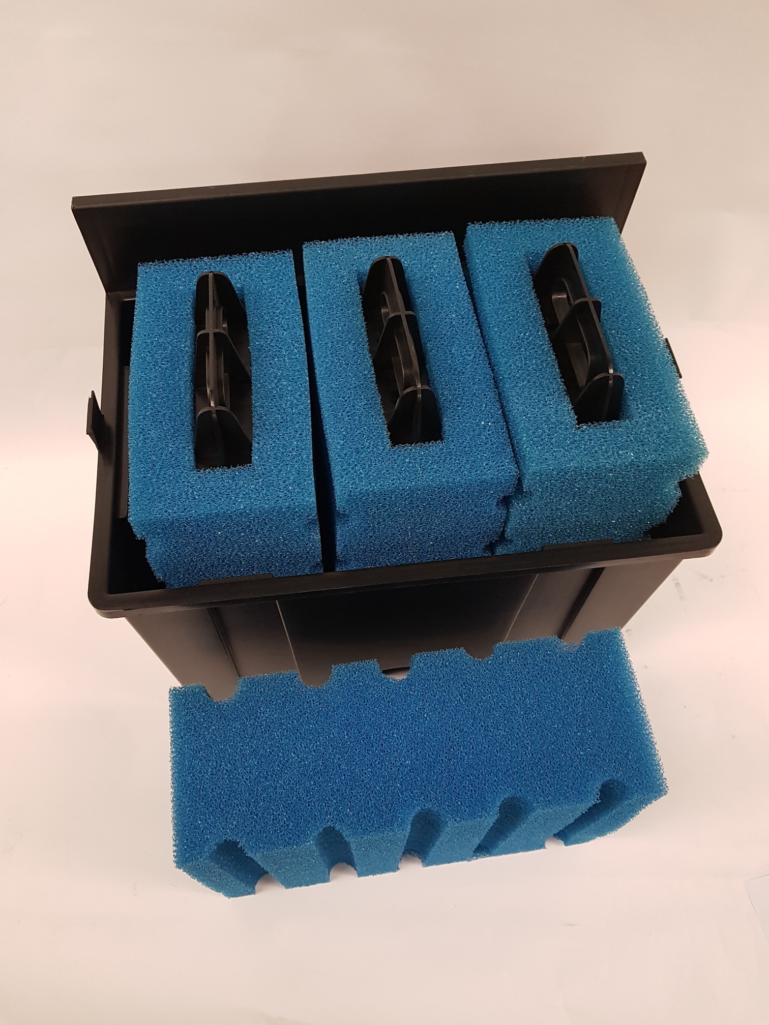 Filtermatten blau 3-teilig zu Kammerfilter UBF 25000 mit Griff inkl. Behälter.