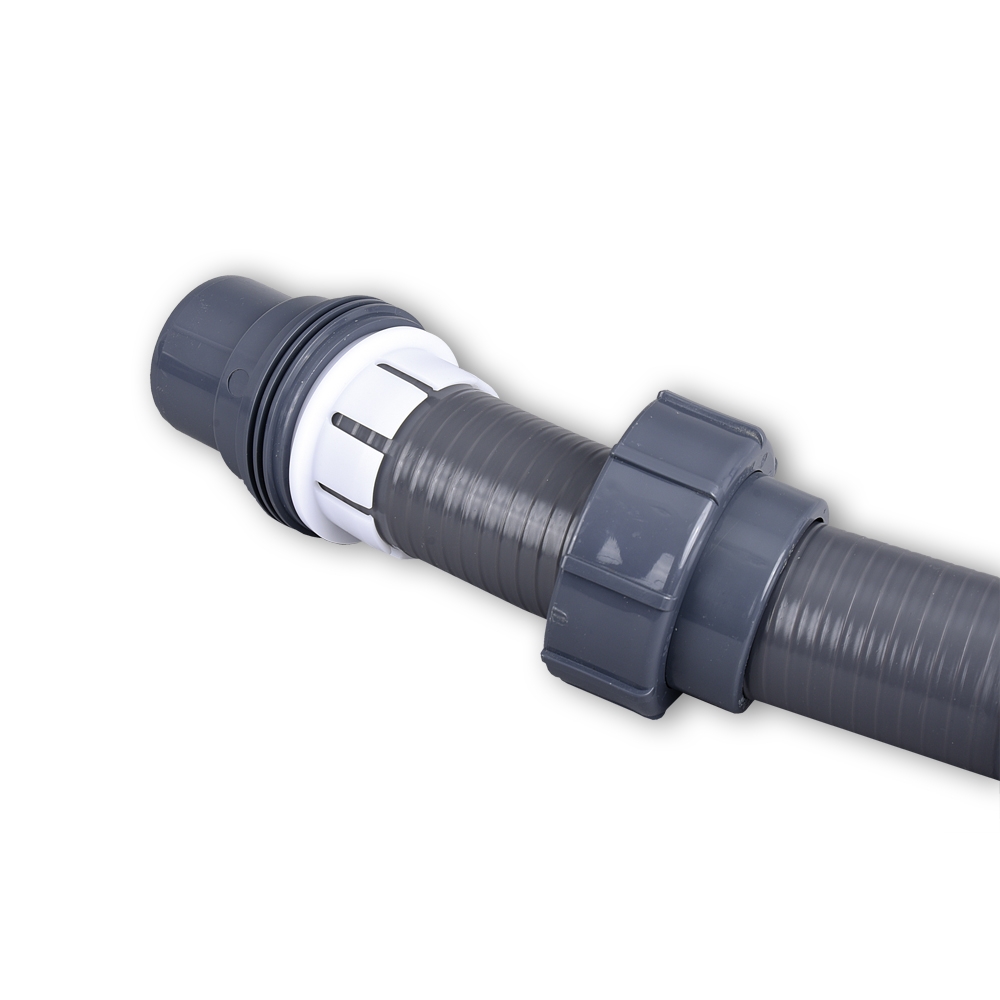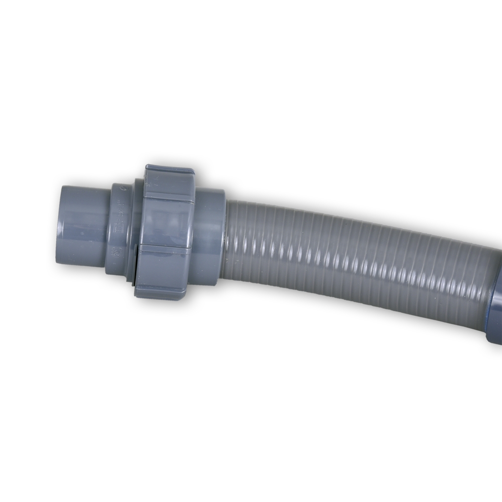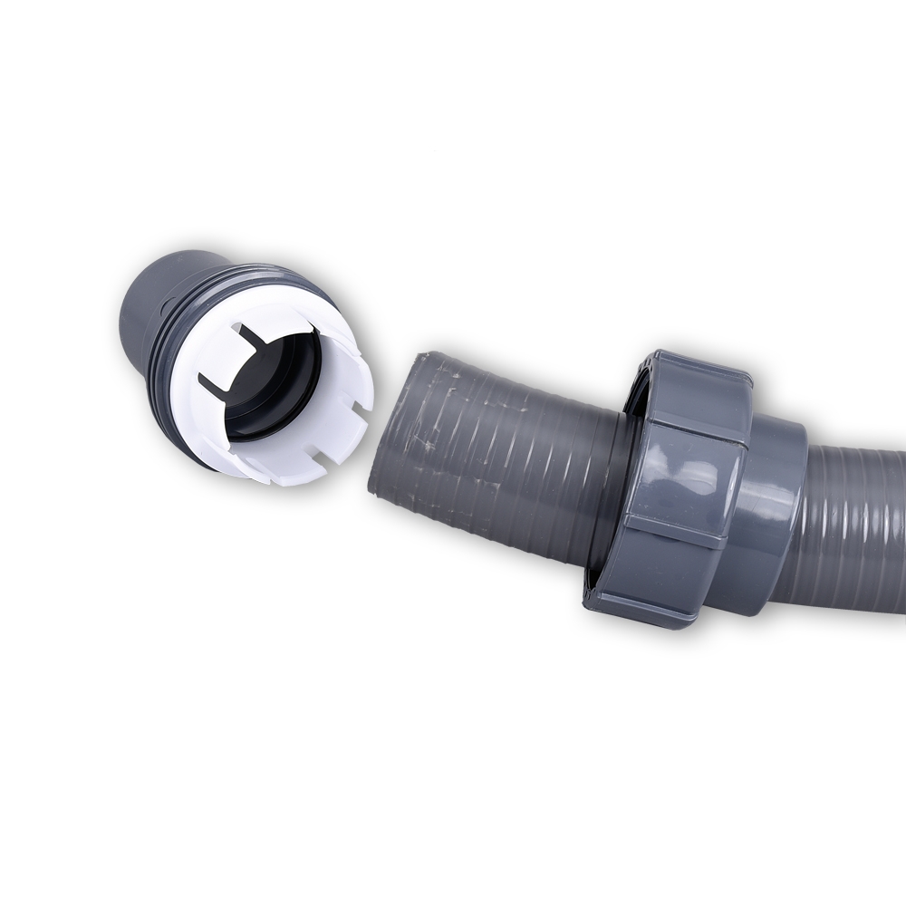 Der graue Flexschlauch kann mit diesen Kupplungen verbunden werden. Damit kann ein Übergang zur Verrohrung hergestellt werden.