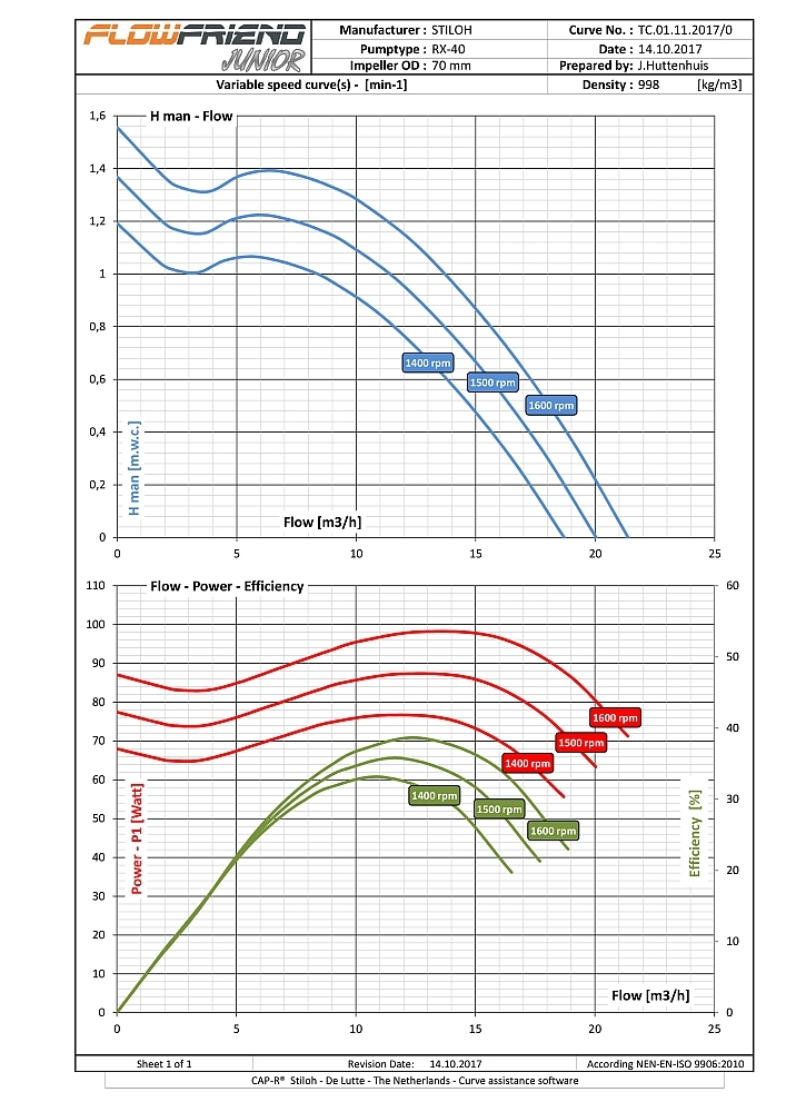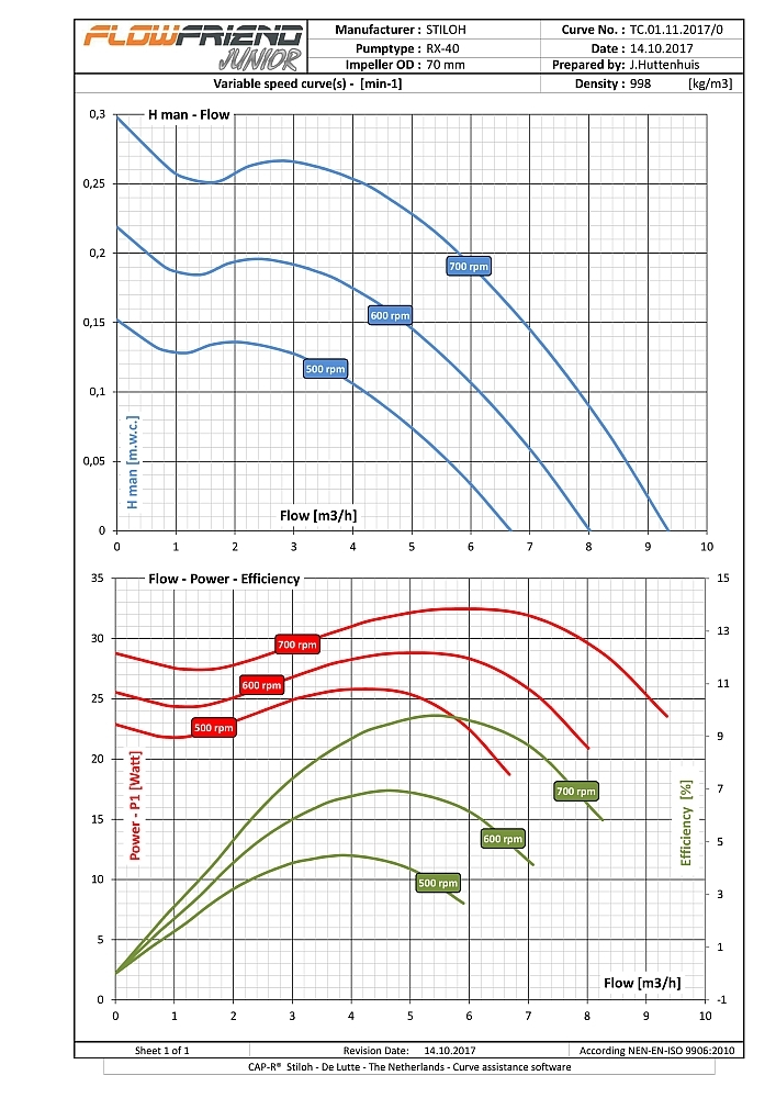 • Regelbar von 2–40 m³/Std. / 20–370 Watt / 500–3000 U/min