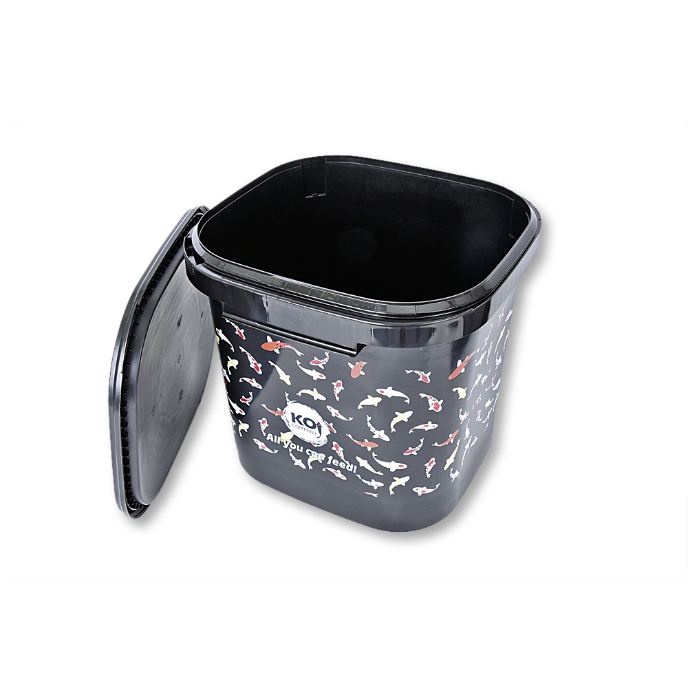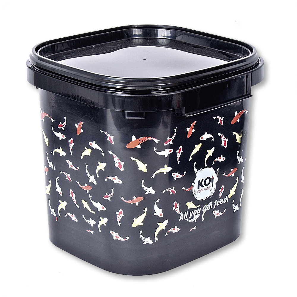 Dieser praktische Futtereimer fasst 15kg Koifutter (Das Futter ist nicht inklusive). Er ist mit dem Deckel luftdicht verschliessbar. Der Futtereimer ist lichtundurchlässig und hat zwei praktische Tragegriffe.
