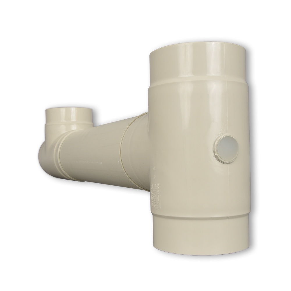Das UVC Gehäuse hat 3 x 110 mm Ein- bzw. Abläufe, die indivduell betrieben werden können.
