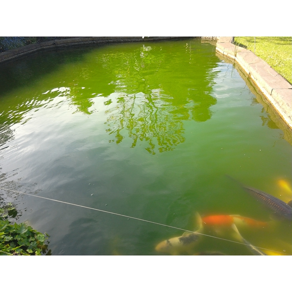 Wenden Sie Grünwasser-Ex nur bei kleinen Teichen bis max. 10.000 Liter an. Bei größeren Teichen sollte das Problem durch eine ausreichend große UV-Lampe gelöst werden.
