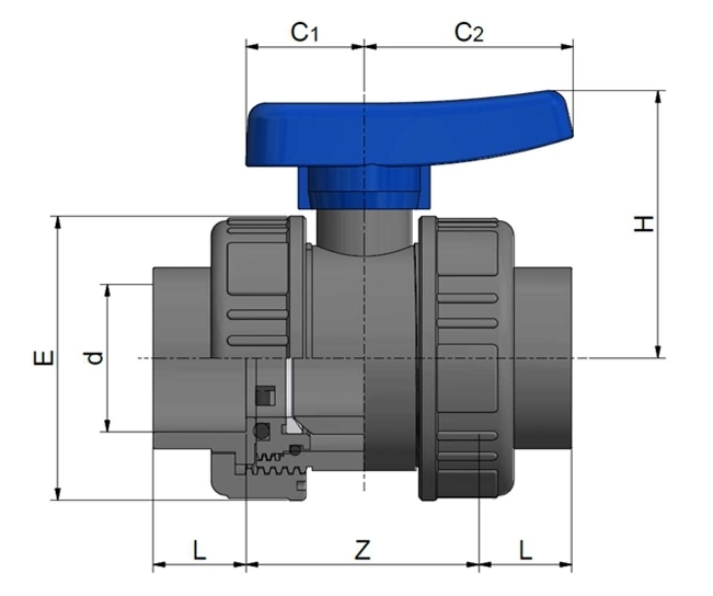 (d) Innendurchmesser (L) Tiefe (Z) Länge H C1 C2 E