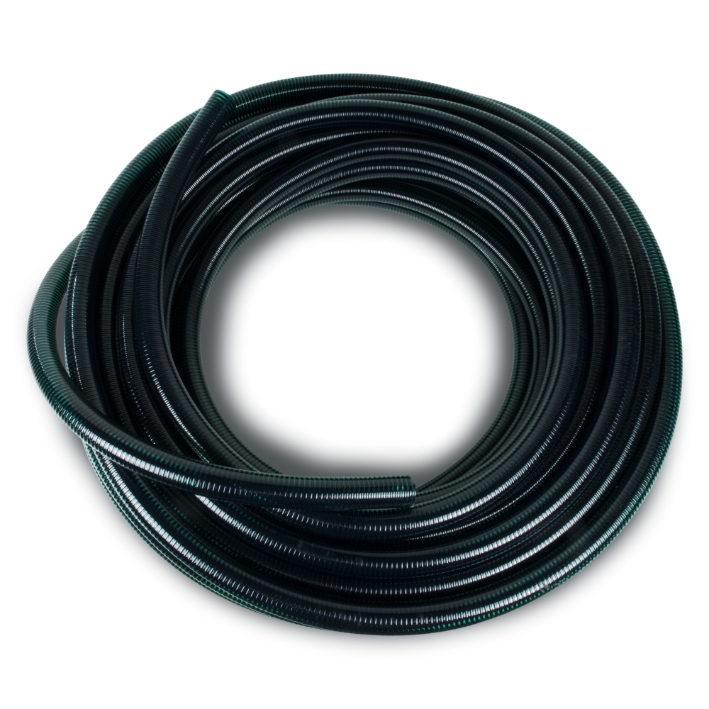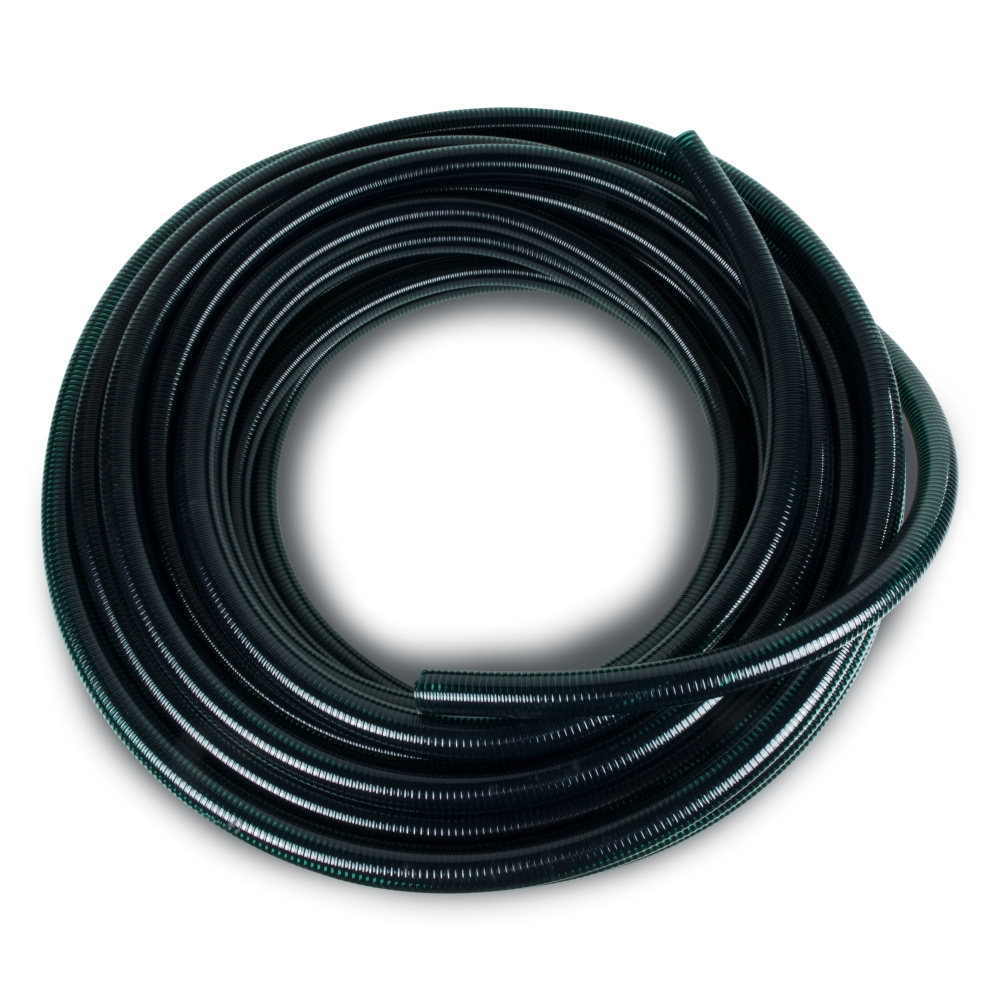 Hochwertiger, witterungsfester PVC-Schlauch, über- und unterirdisch zu verlegen.