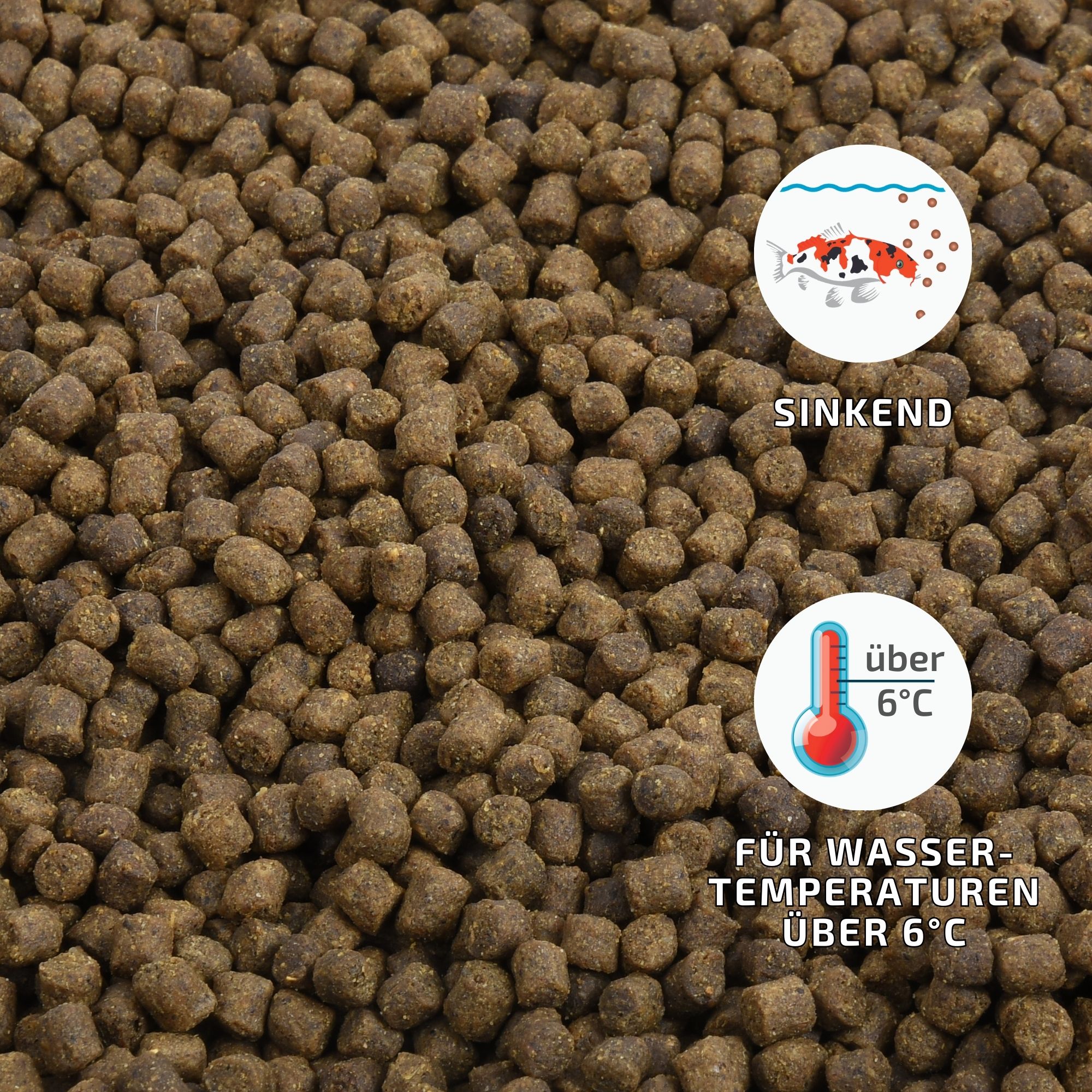 Dieses Störfutter ist für Wassertemperaturen über 6°C geeignet (aber nur für Störe) (sinkend).