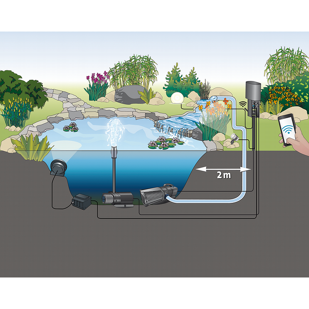 • Lässt sich mit der neuen OASE Cloud einfach vernetzen. So können die angeschlossenen Geräte auch von unterwegs kontrolliert und gesteuert werden