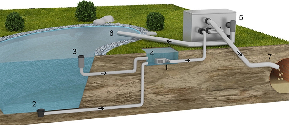 6 - Rücklauf in den Teich (gereinigtes Wasser)
