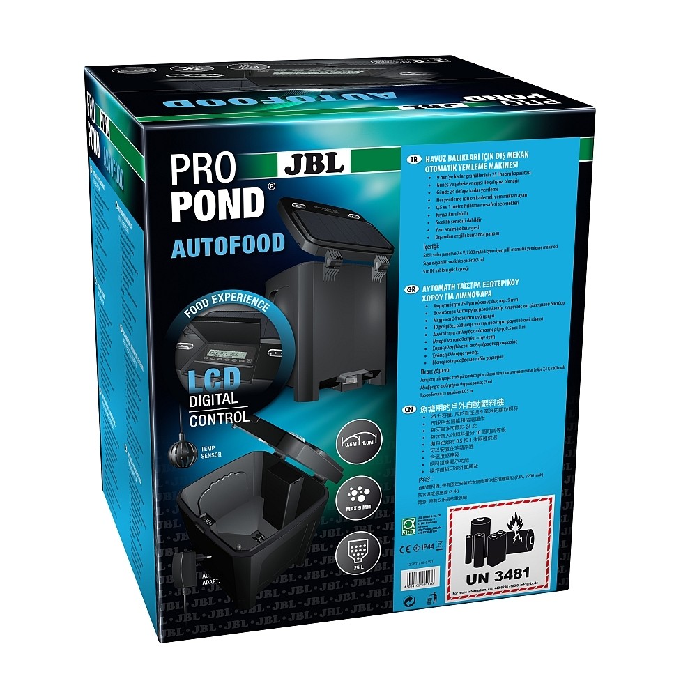 Mit dem JBL ProPond Autofood bieten wir einen programmierbaren Futterautomaten mit großem Fassungsvermögen an. Der Automat fasst bis zu 25 Liter und könnte durch seinen breiten und einstellbaren weiten Auswurf von 0,5 – 1,0 Meter auch bei jedem japanischen Züchter dankend zum Einsatz kommen.