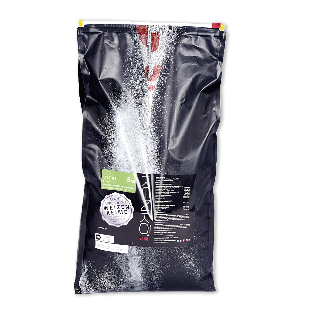 Vital ein Ganzjahresfutter im Premium Koifutterbereich an. Sie können dieses Futter das ganze Jahr über füttern, selbstverständlich auch in den Übergangszeiten und im Winter. Auch nach Medikamentierungen und Stresssituationen empfehlen wir dieses Koifutter.