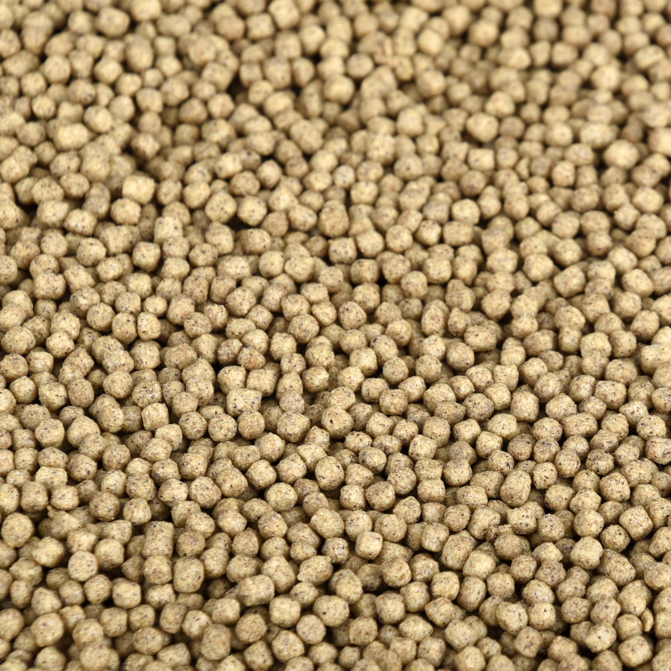 Durch die kleine Körnung in der Größe von 3,0 mm eignet sich das Futter optimal als gesundes und ausgewogenes Aufzuchtsfutter für heranwachsende Koi.