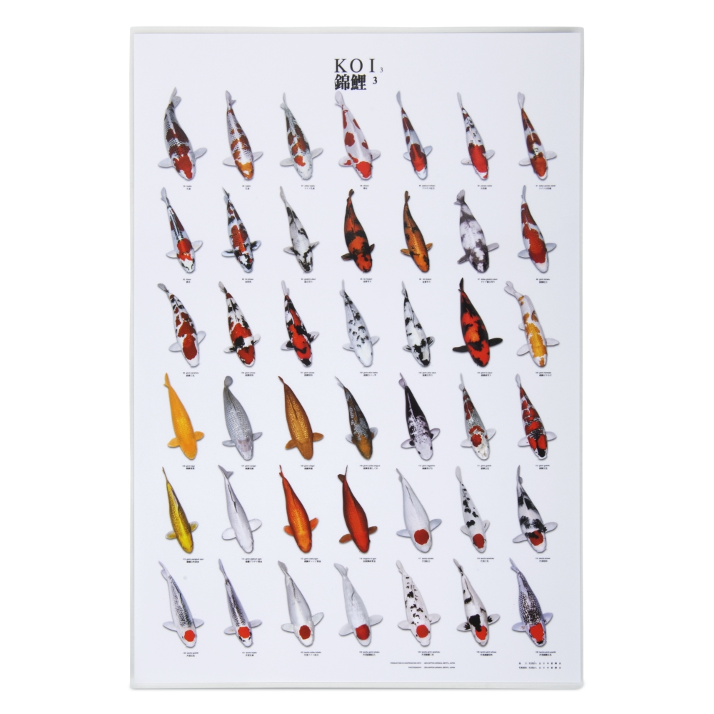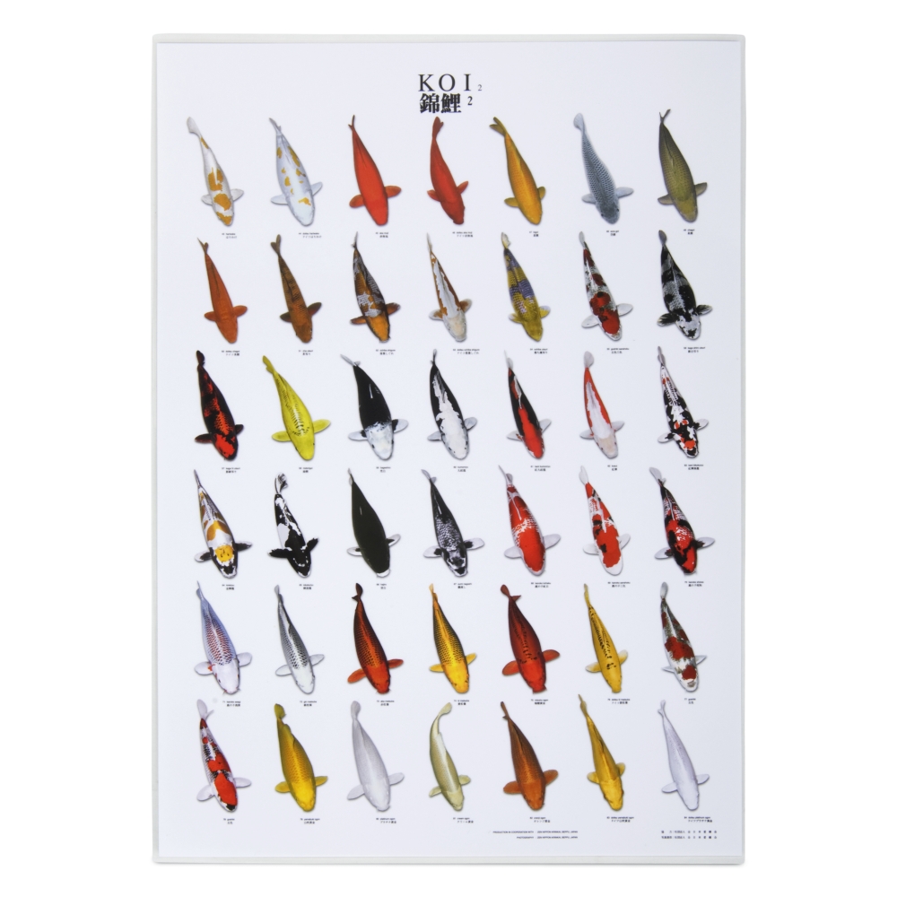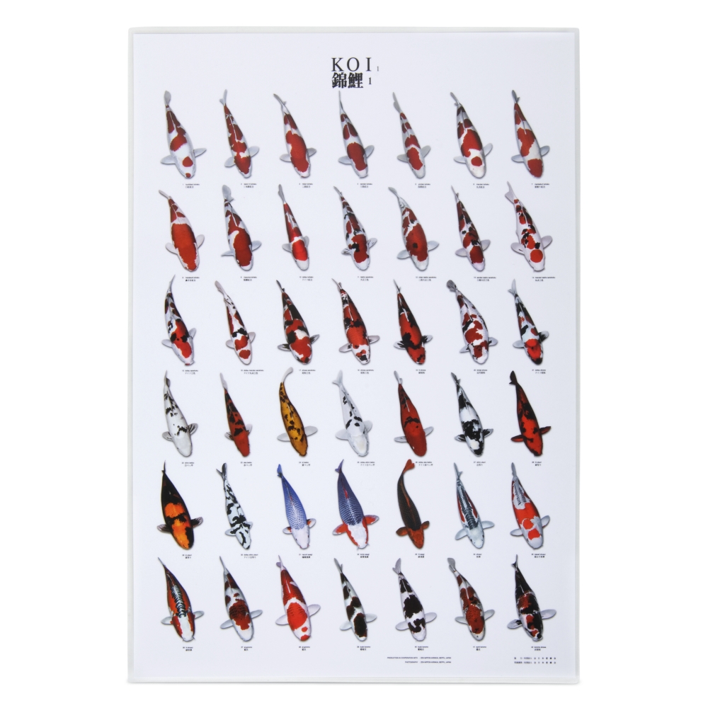 Jedes Poster beeinhaltet 42 Koiabbildungen in 14cm Länge. Die Poster sind beidseitig laminiert und somit wassergeschützt.