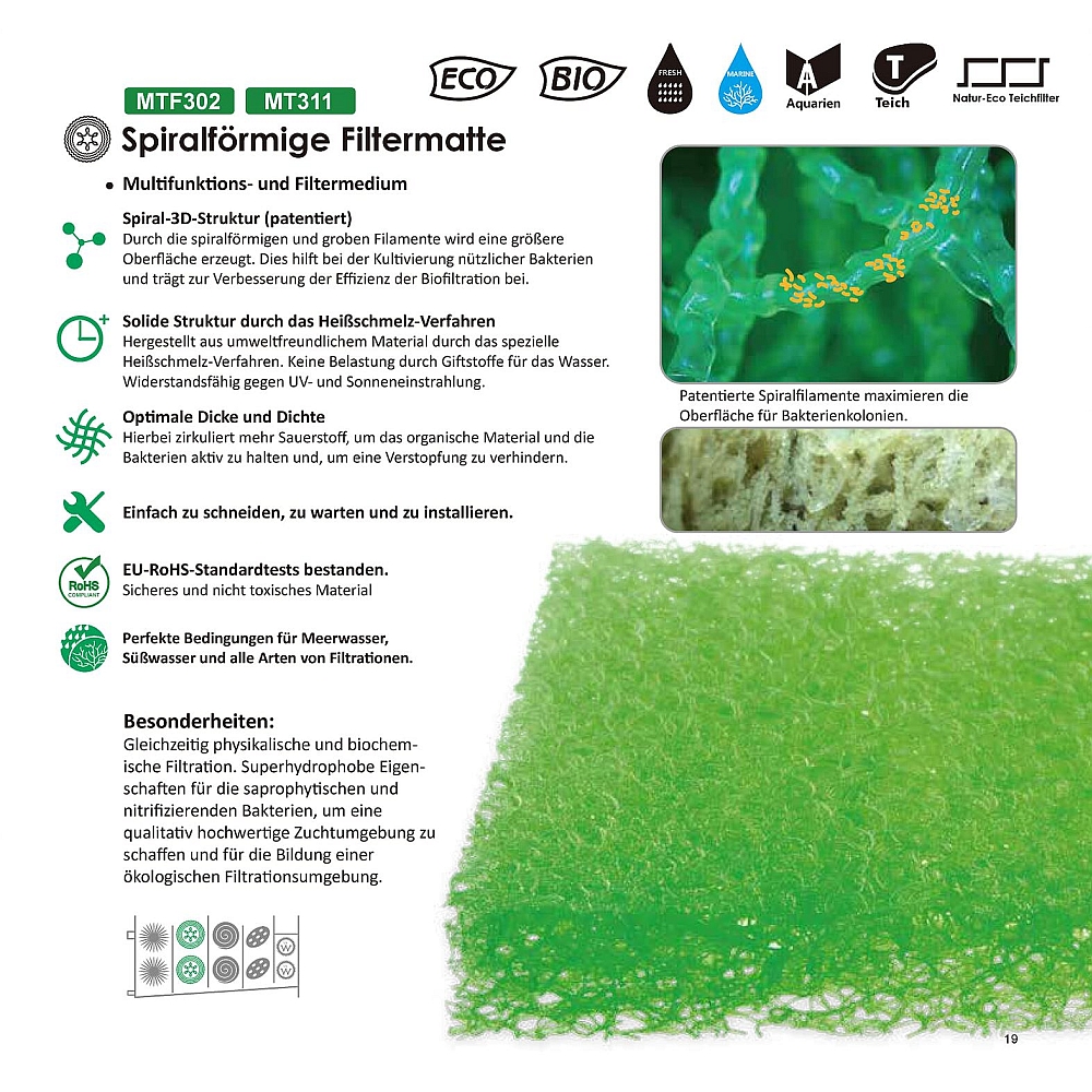 - Biochemische Matte. Geeignet für die Filtration in Teichen und Aquarien