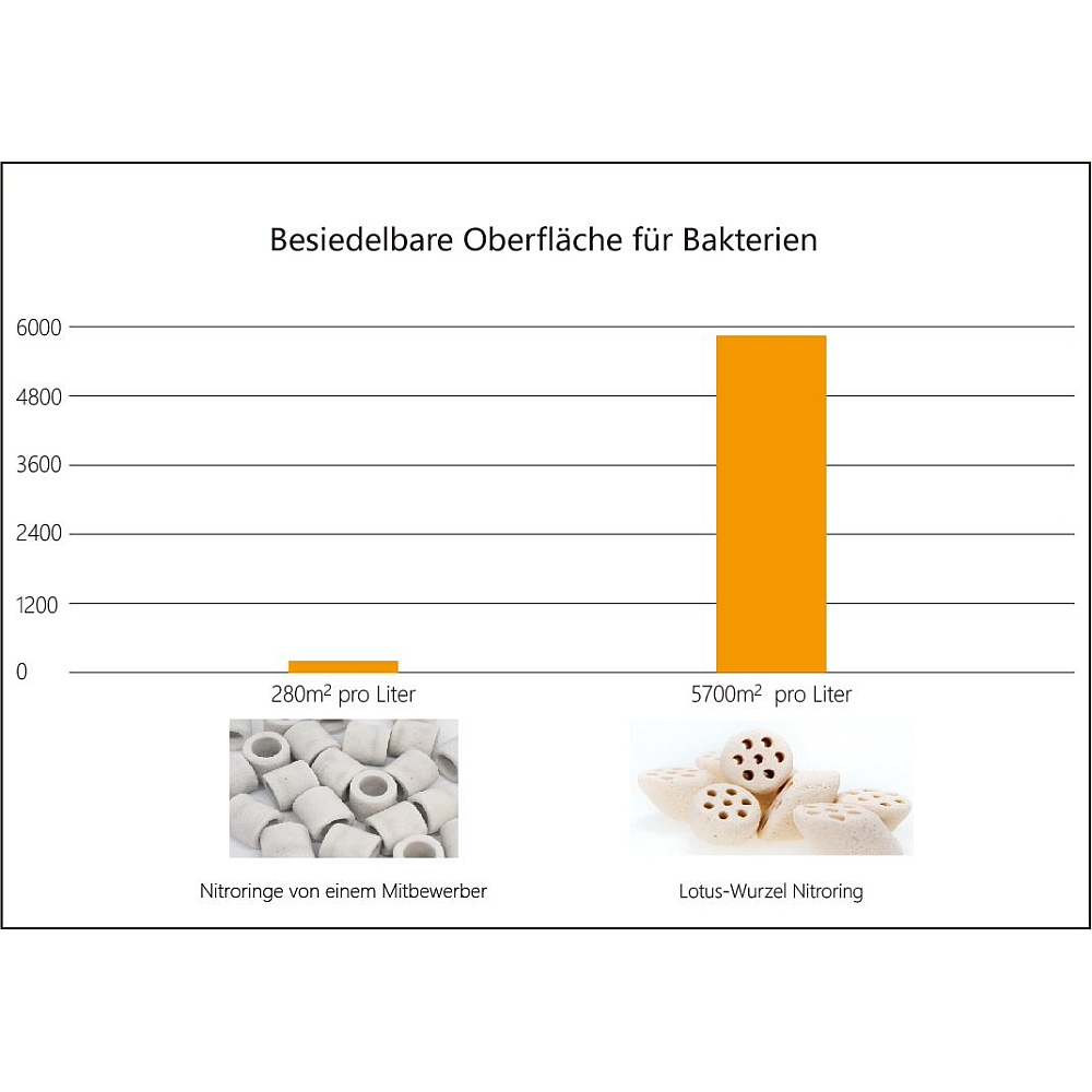 - Besiedelbare Oberfläche für Bakterien: 5700m2 pro Liter