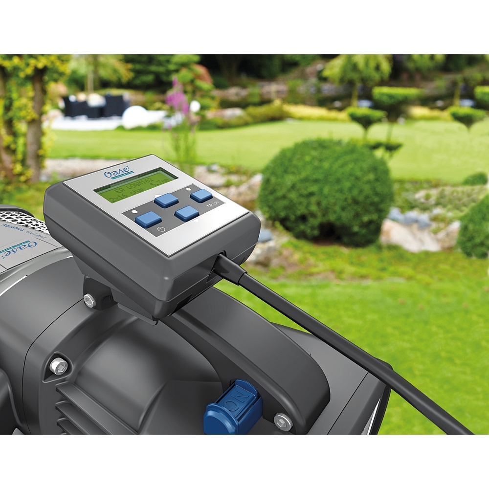 Das Eco Control Steuergerät steuert die Eco Expert Pumpen, die OASE Titanium Pumpen und die neuen Eco Premium Core 6 Pumpen. Der Controller wird direkt an der Pumpe befestigt, wahlweise auch auf einem Erdspieß oder an der Wand (10 m Kabel, Stromzufuhr erfolgt über Pumpe).