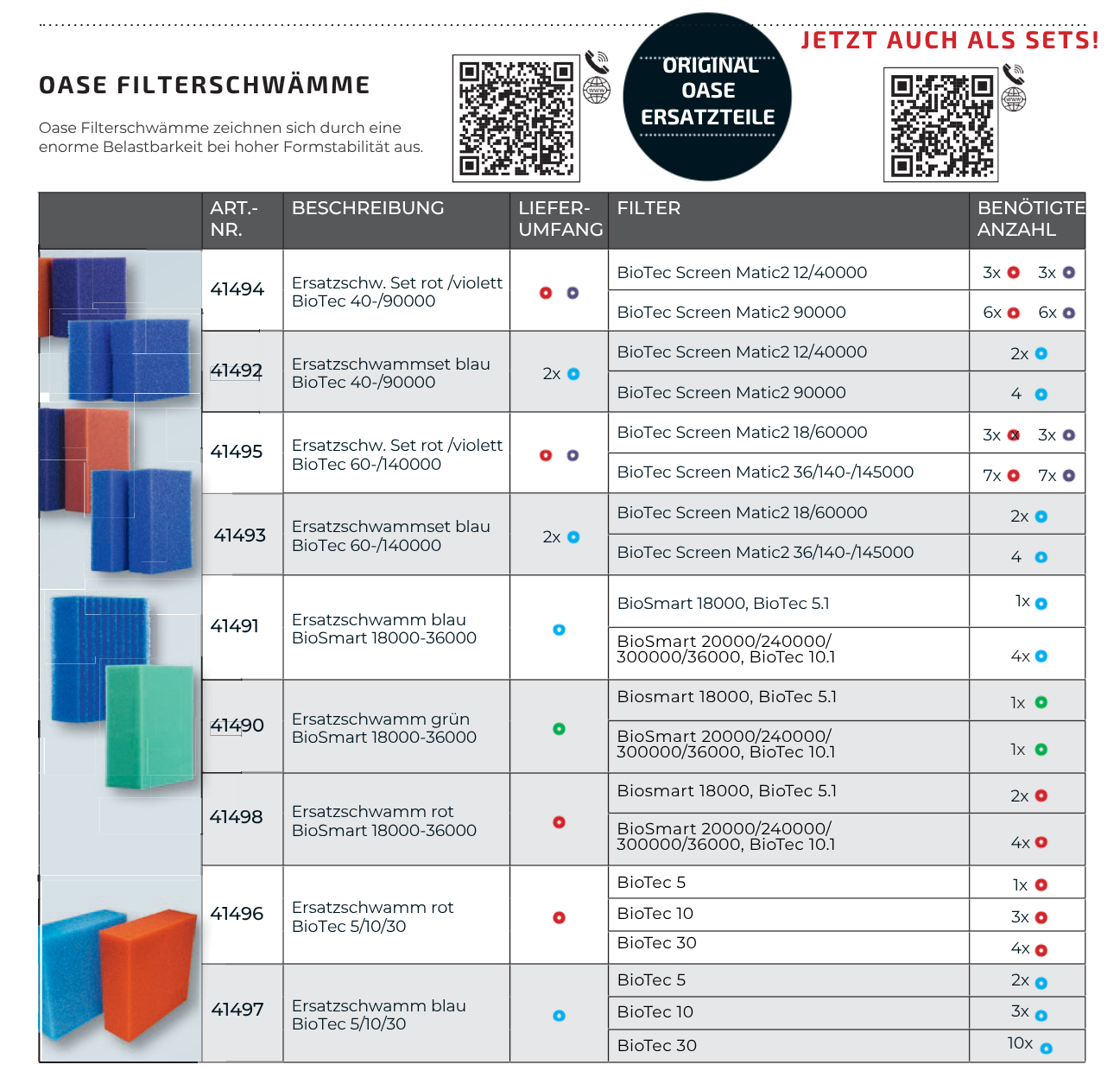 Sie haben Fragen zu OASE Ersatzfilterschwämme?