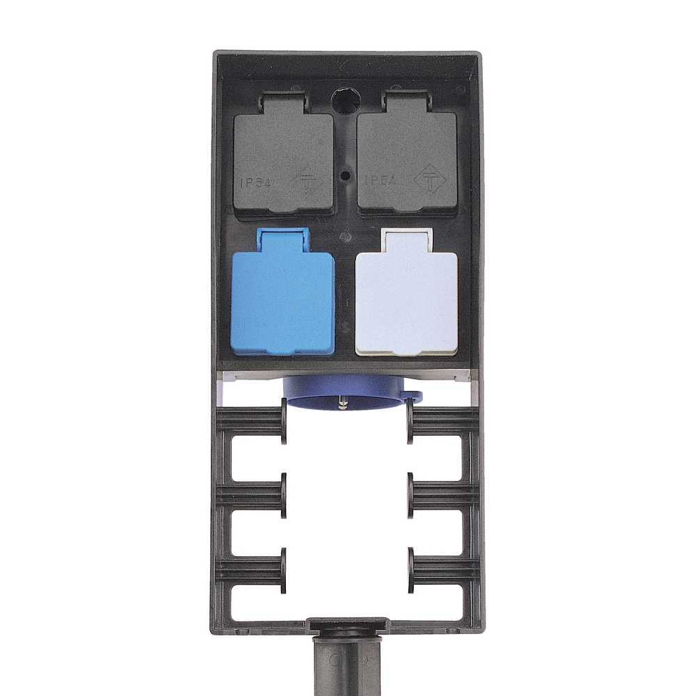 - Ganzjähriger Einsatz dank spritzwassergeschützter und zugentlasteter Steckdosen