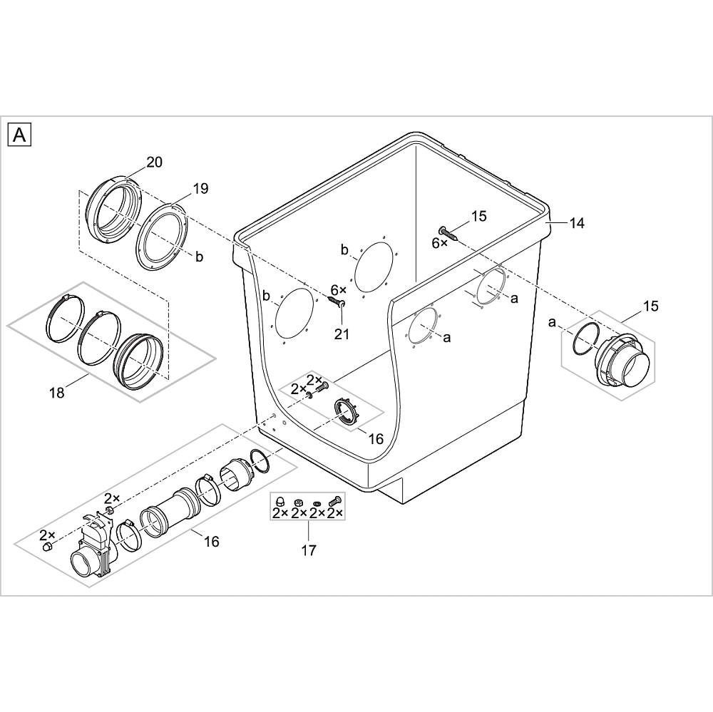 | Sonstiges | Belüftung vorinstalliert Schmutzablass inkl. Zugschieber |