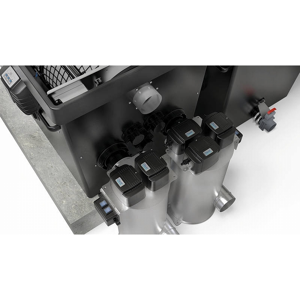 Die vergrößerte Trommel mit bis zu 50.000 l/h Druchfluss in der gepumpten Aufstellung bietet ein optimales Filterergebnis bei hoher Durchflussrate auf engstem Raum.