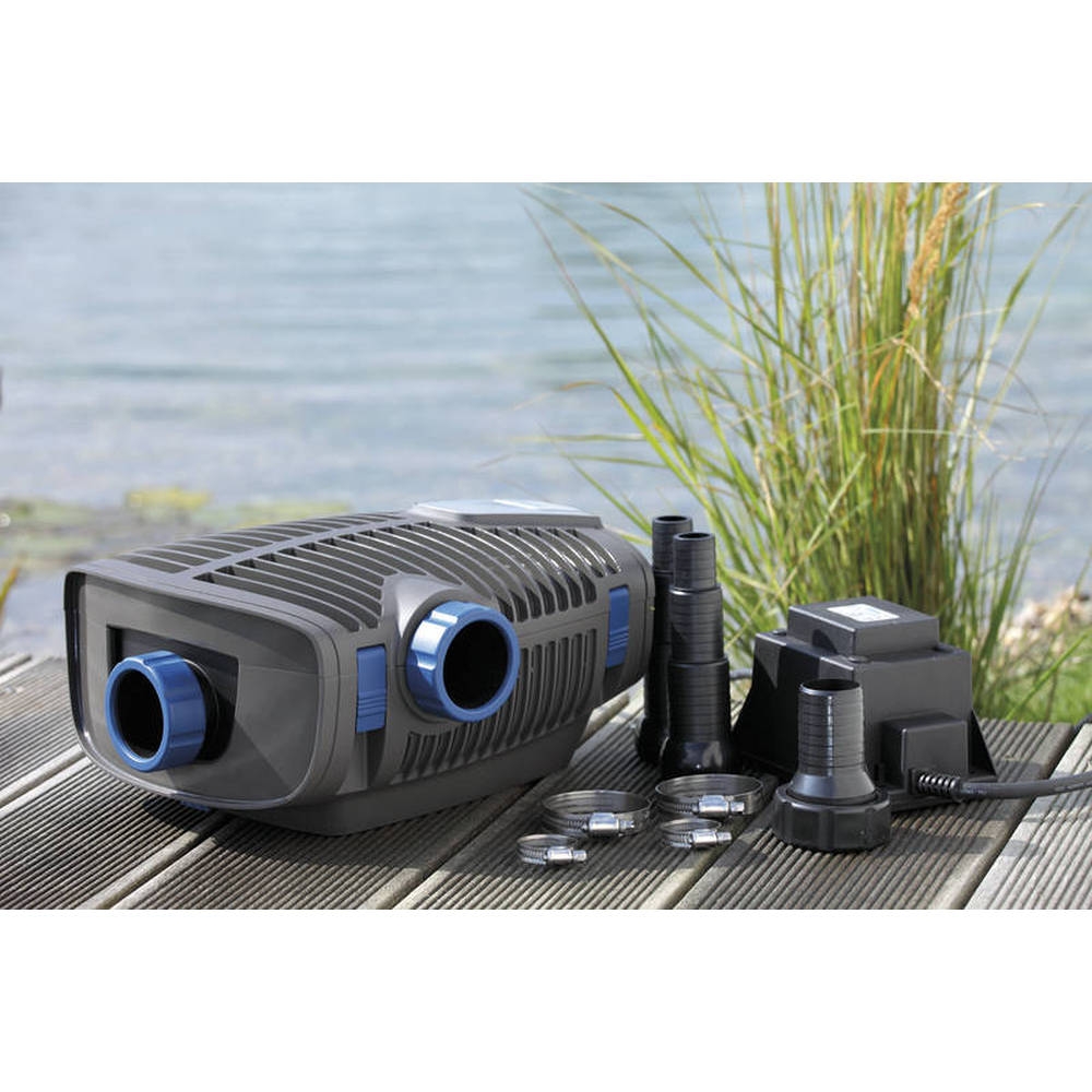 Das 6.000er Modell wird mit Schlauchtüllen 25/32/38 mm ausgeliefert. Das 12.000er Modell gibt es mit  25/32/38/50 mm Schlauchtüllen. Die Anschlüsse der Pumpe sind 2". Unser 40mm Schlauch passt auf die Tülle.