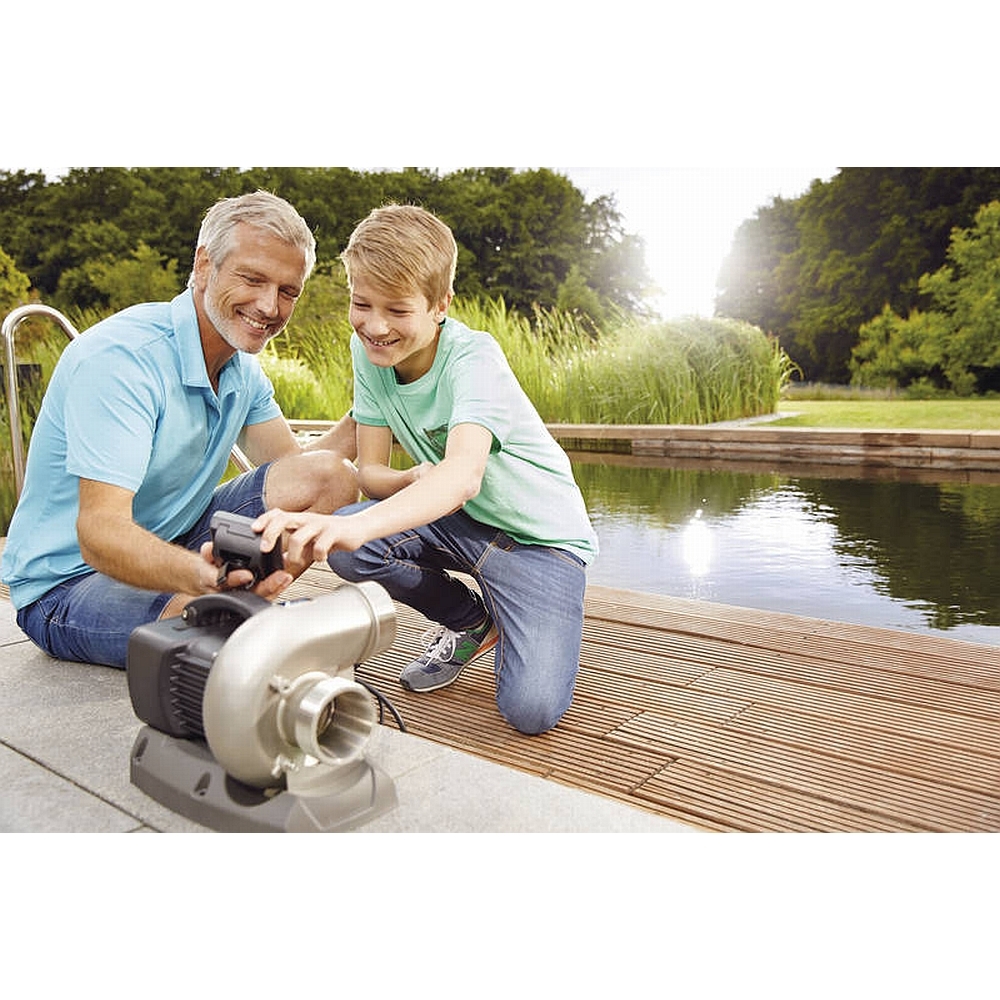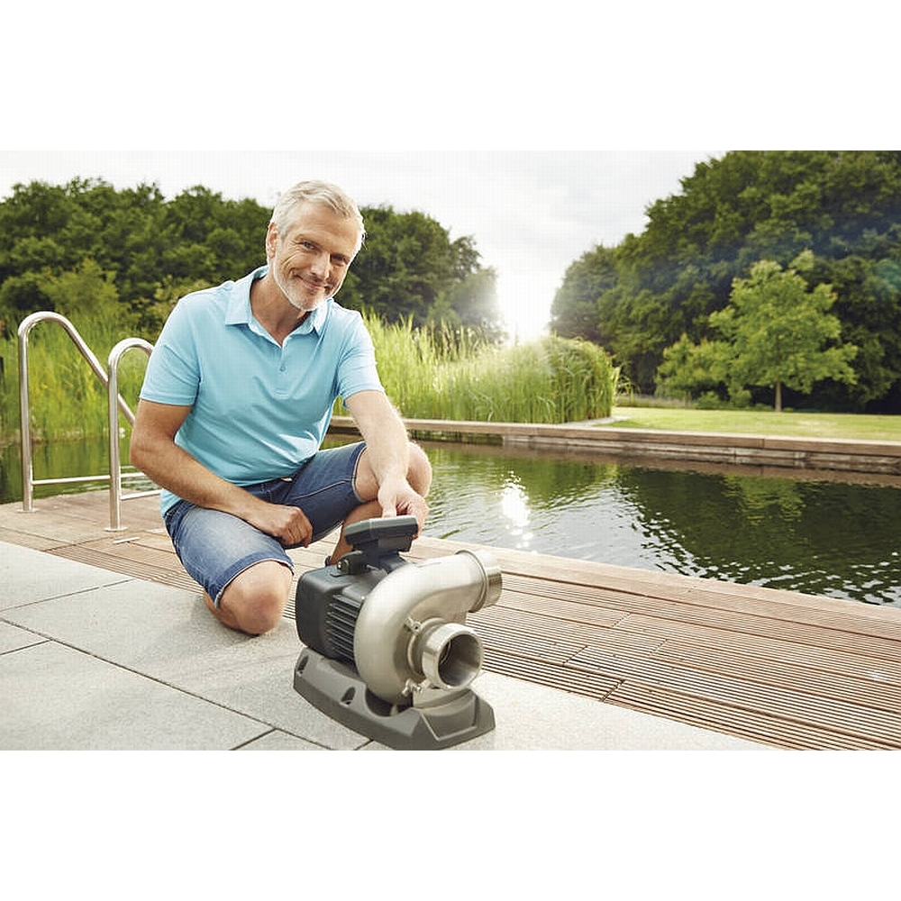 Ein einschaltbarer SFC (Seasonal Flow Control) Schalter optimiert die Pumpe selbständig bei fallenden Temperaturen und reduziert die Wassermenge bis zu 50%. Dies bedeutet eine deutliche Energieeinsparung. Die Pumpe kann sowohl trocken als auch nass aufgestellt werden, zudem ist sie extrem leise.