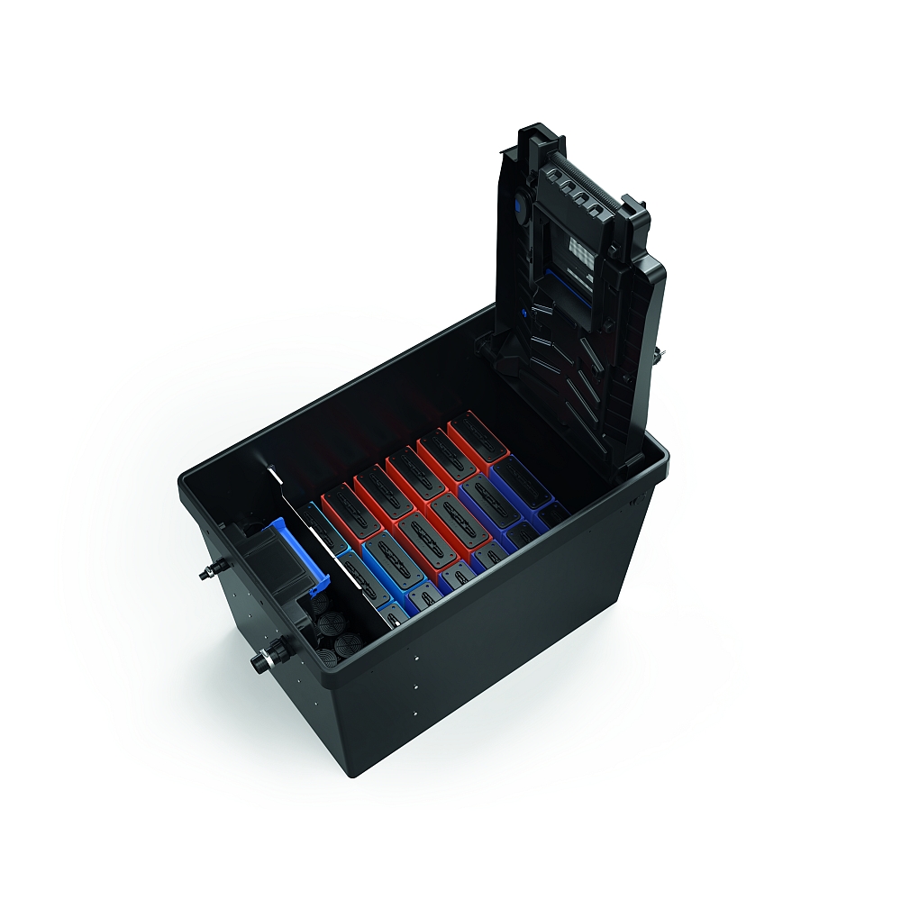 Der Deckel des Filters kann mit sturmsicheren Befestigungsclips verschlossen werden.