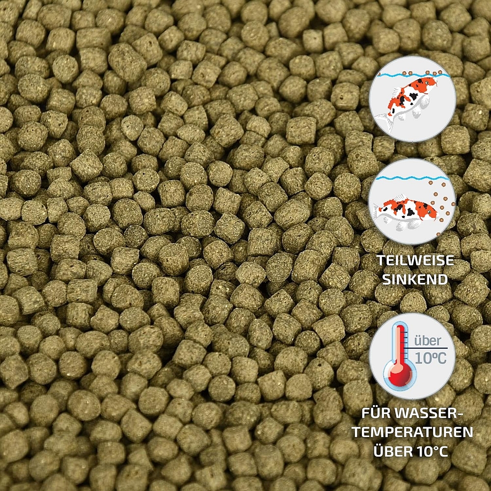 Dieser Futtermix für Koi setzt sich aus den Qualitäts Futtersorten Oishii® Growth, Color und Health (sinkend) zusammen. Der Premium Mix aus Deutschland. Das Futter besticht durch seine Inhaltsstoffe und wurde für die Futterakzeptanz der Koi entwickelt.