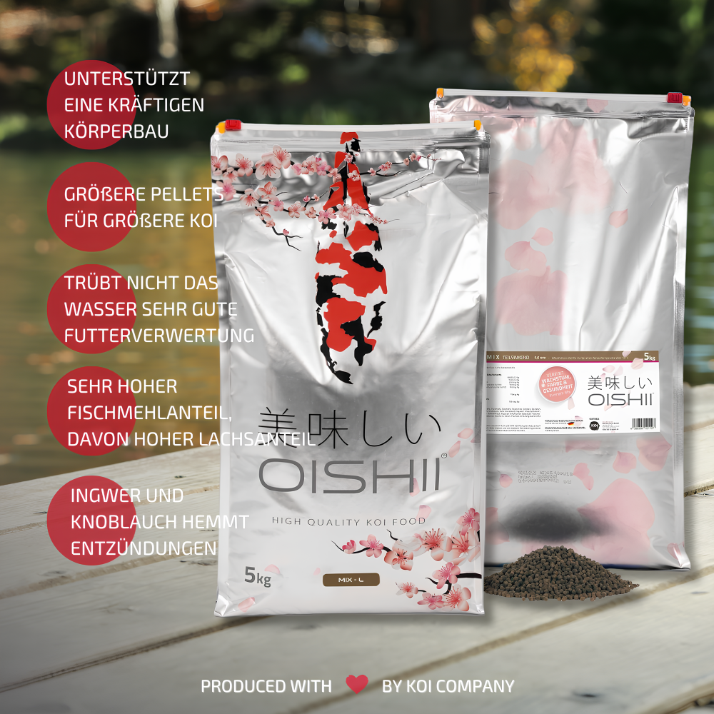 Oishii bedeutet Lecker! Und das muss ein Futter bekanntlich sein, damit unsere Koi es gerne fressen.