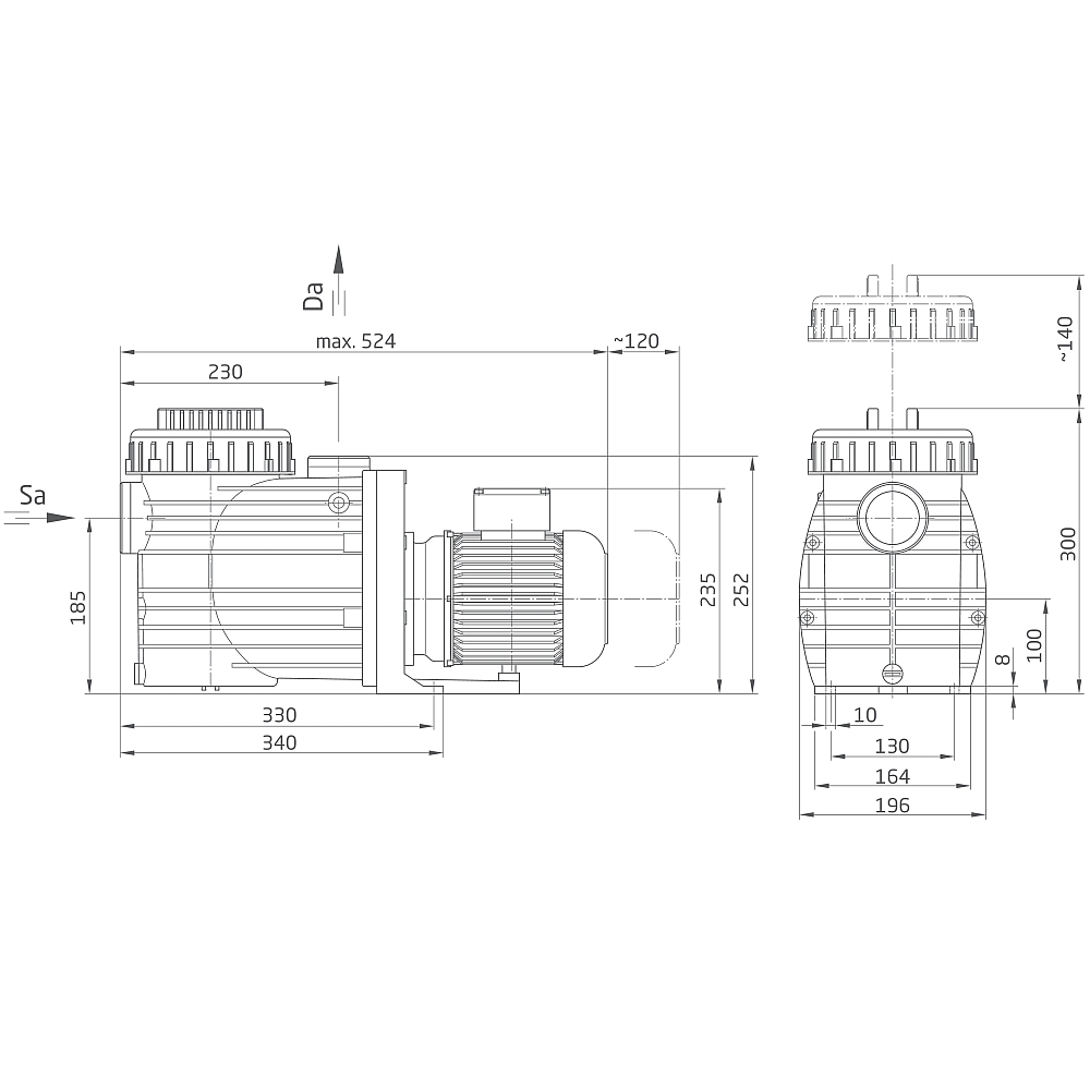 Schwimmbadwasser-Umwälzung in Filteranlagen, aufstellbar oberhalb oder unterhalb des Wasserniveaus jeweils max. 3 m.