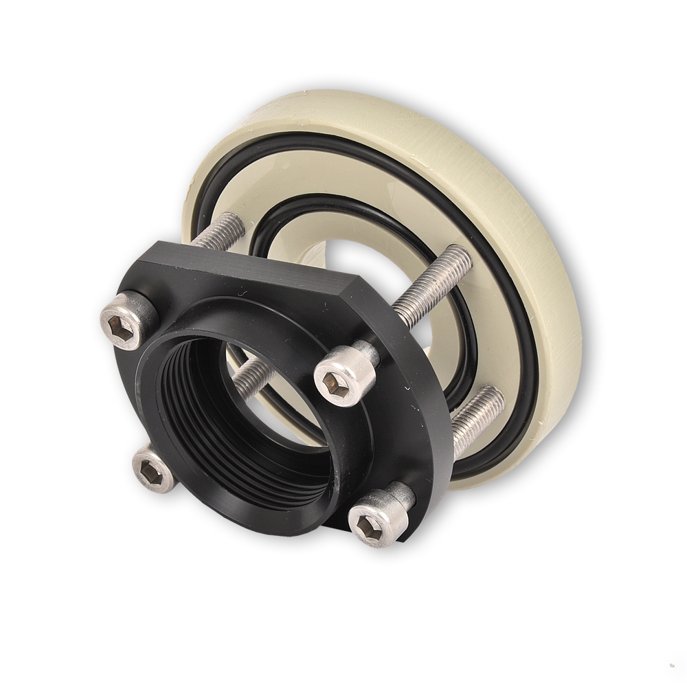 Der passende Polymerflansch zur Polymerverschraubung zum Einsatz im Meerwasser.
