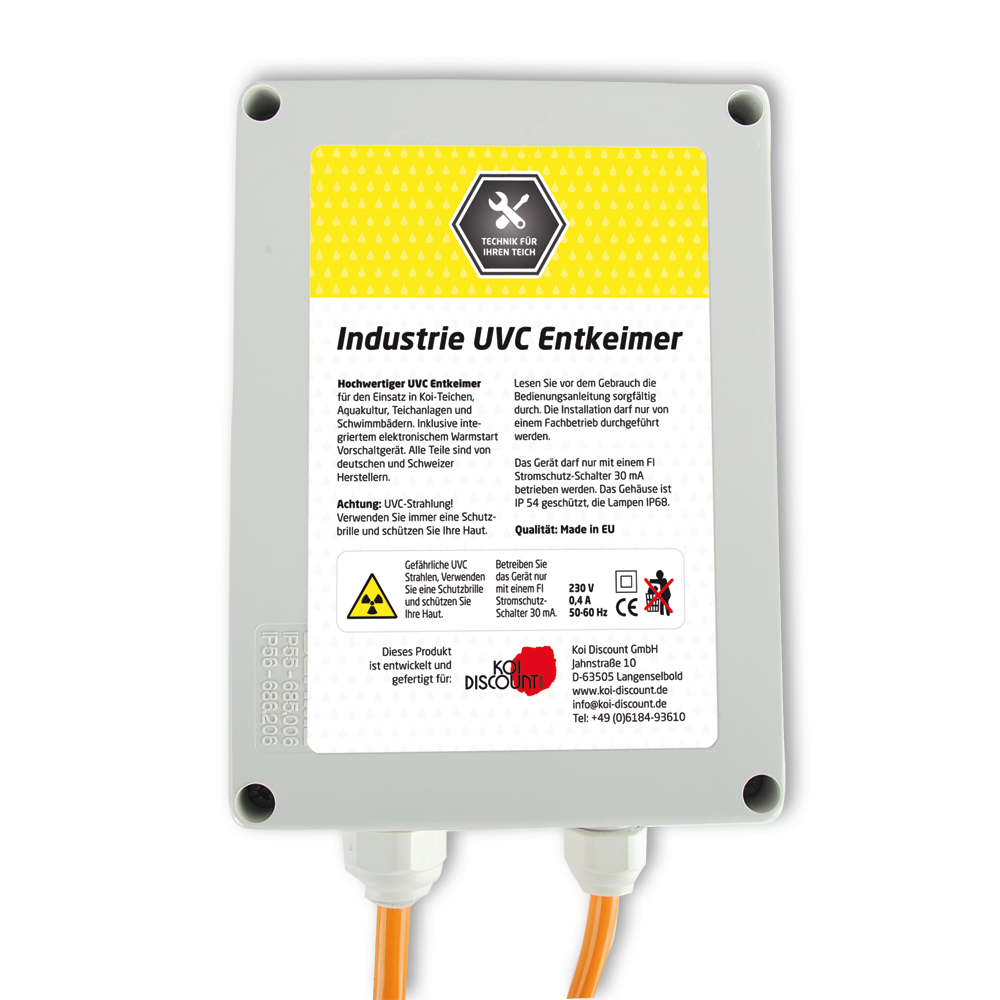 Die elektronische Hochvoltanlage erkennt, welche Lampe sie eingesetzt haben. So können Sie bei Bedarf die Lampenleistung einfach erhöhen oder reduzieren, indem sie lediglich die Lampe austauschen. Das Gerät ist für verschiedene Lampenstärken geeignet. Diese Industrie -UVC hat ein wesentlich breiteres Spektrum als eine normale UVC. Dies macht sich in der Haltbarkeit der Lampen bemerkbar, welche erst nach 16.000 Stunden ausgetauscht werden müssen.