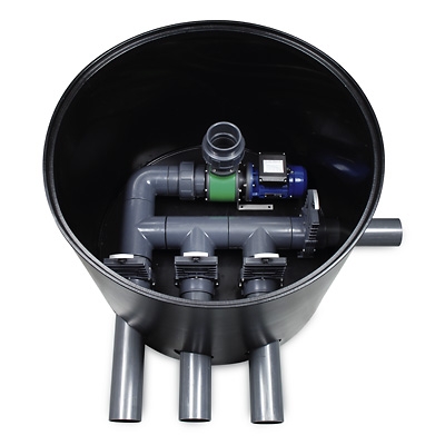 Sie wird so eingegraben, dass die Oberkante bündig mit der Teichoberkante abschließt (Einbauanweisung beachten!). Die Pumpenkammer kann wahlweise unterirdisch installiert oder frei auf einem Fundament aufgestellt werden.