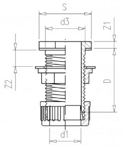 | (d1) Innendurchmesser unten | (d3) Innendurchmesser oben | Z1 | Z2 | D | S |